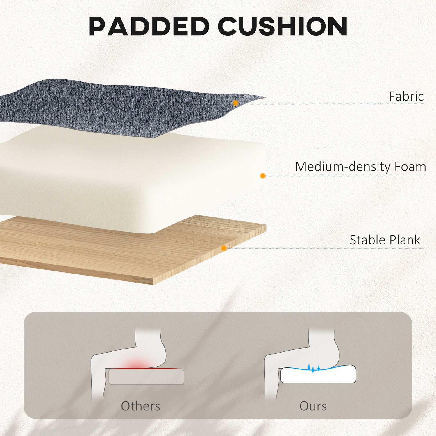 - Mid-density foam padding offers cushioned, supportive seating