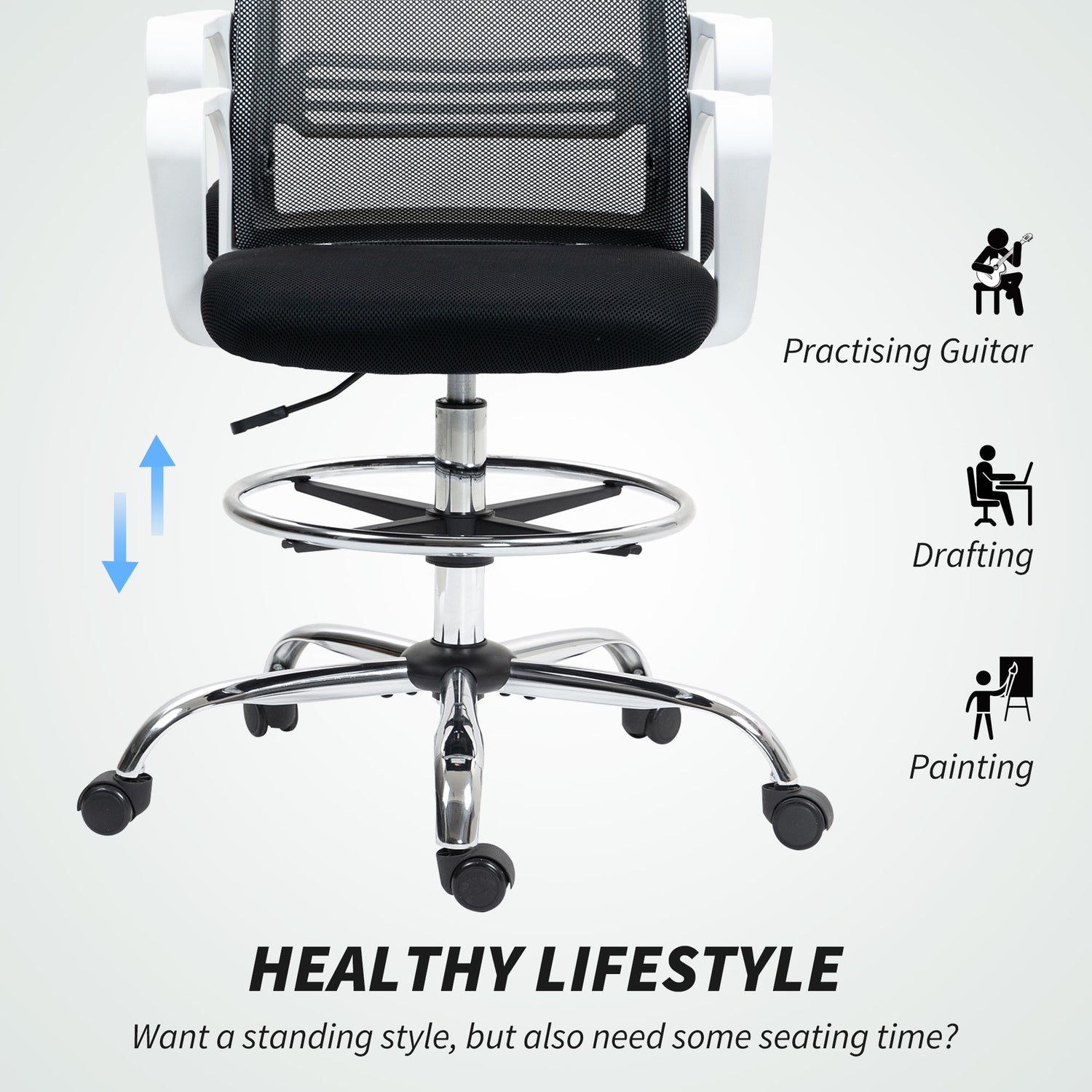 HOMCOM Draughtsman Chair, Mesh Drafting Chair, Ergonomic Office Chair with Lumbar Support, Adjustable Foot Ring, Black