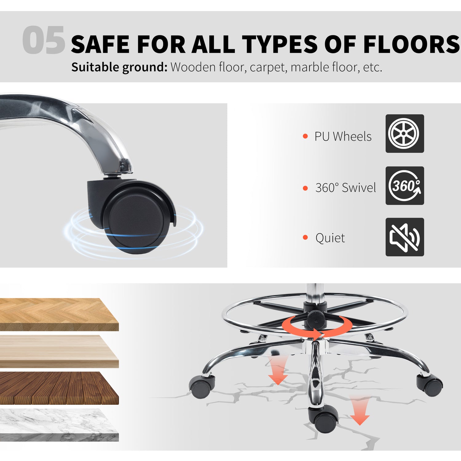 - 360° swivel with wheels: Glide your standing desk chair effortlessly across most floors, moving with ease while staying steady and comfortable