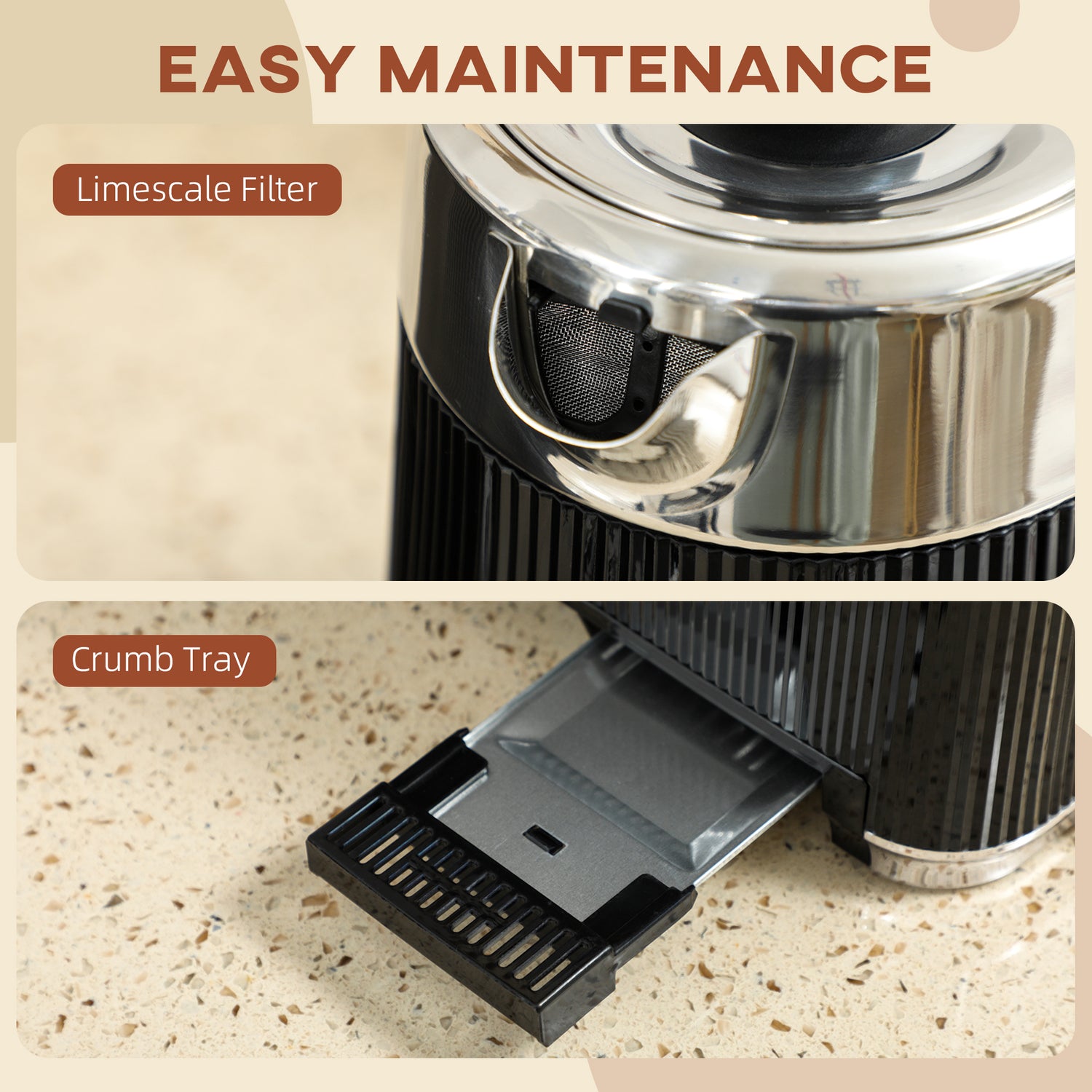 HOMCOM Electric Kettle and Toaster Set, 3000W 1.7L Rapid Boil, Cool Touch, 4 Slice Toaster with 7 Browning Controls, Crumb Tray, Black
