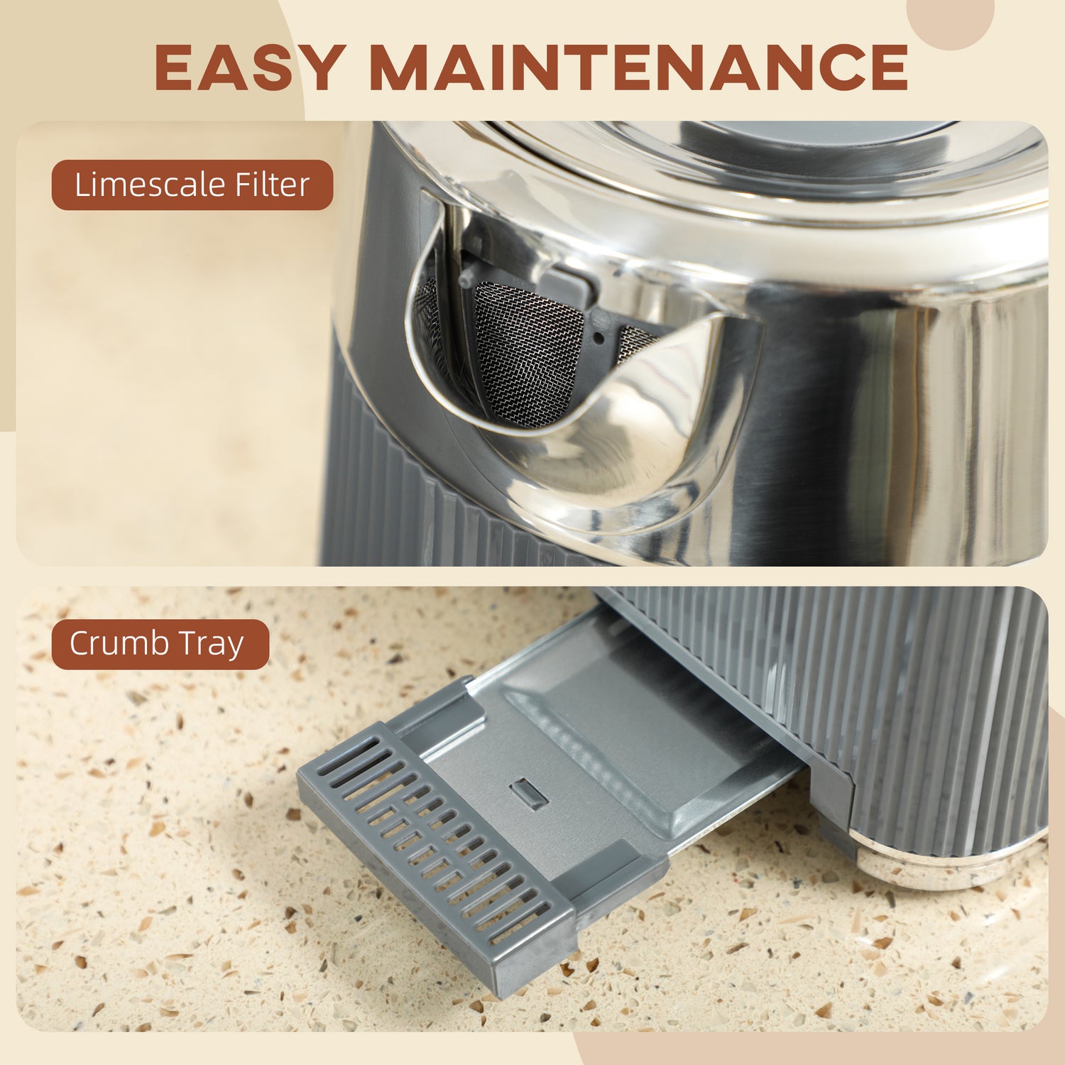 - Easy clean, healthy design: The kettle and toaster set includes a removable crumb tray and limescale filter, helping you keep your kitchen tidy and your breakfast healthier with minimal effort