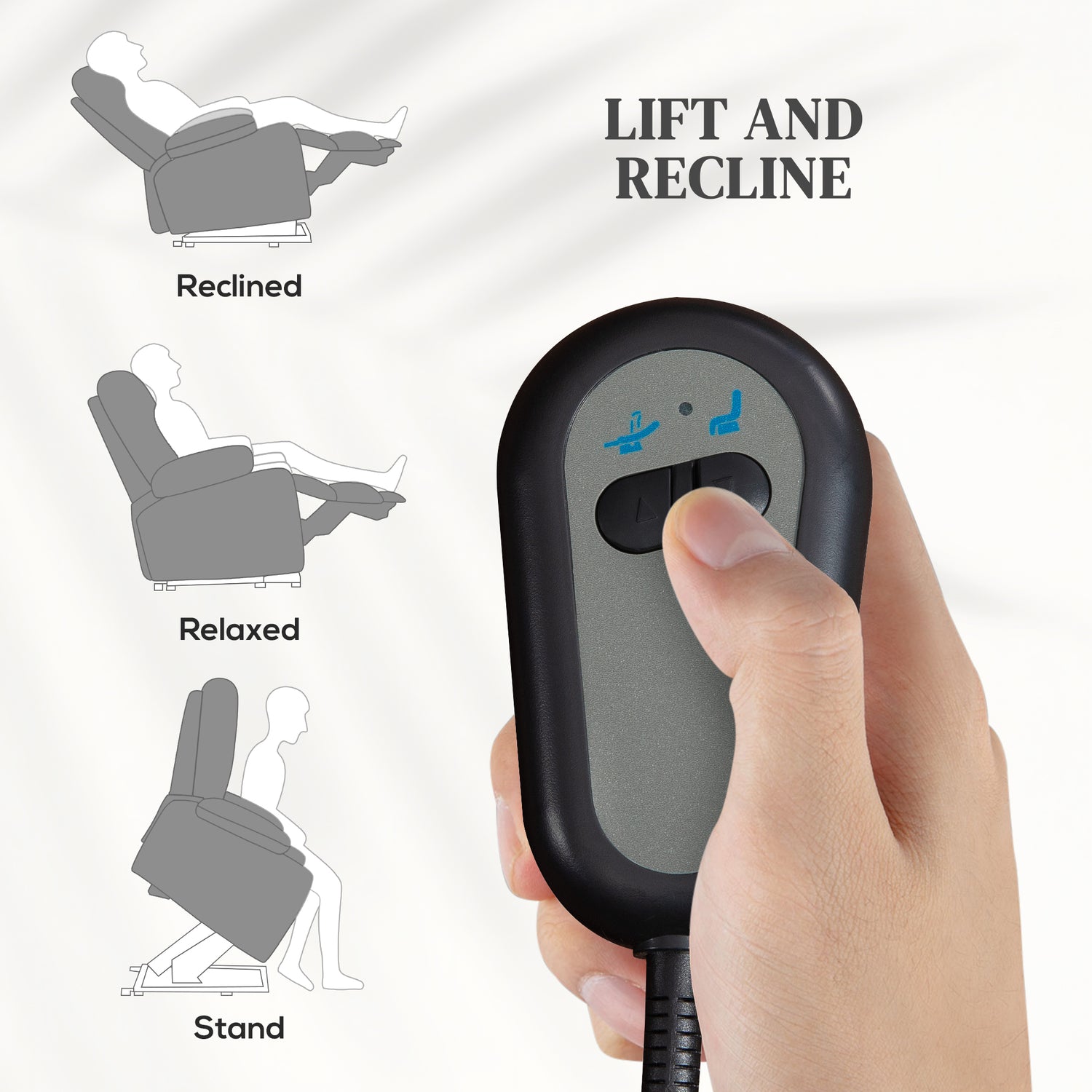 - Wired remote control: It allows for convenient adjustment of the reclining and lifting functions to the lift chair. When not in use, there are two side pockets for easy storage.