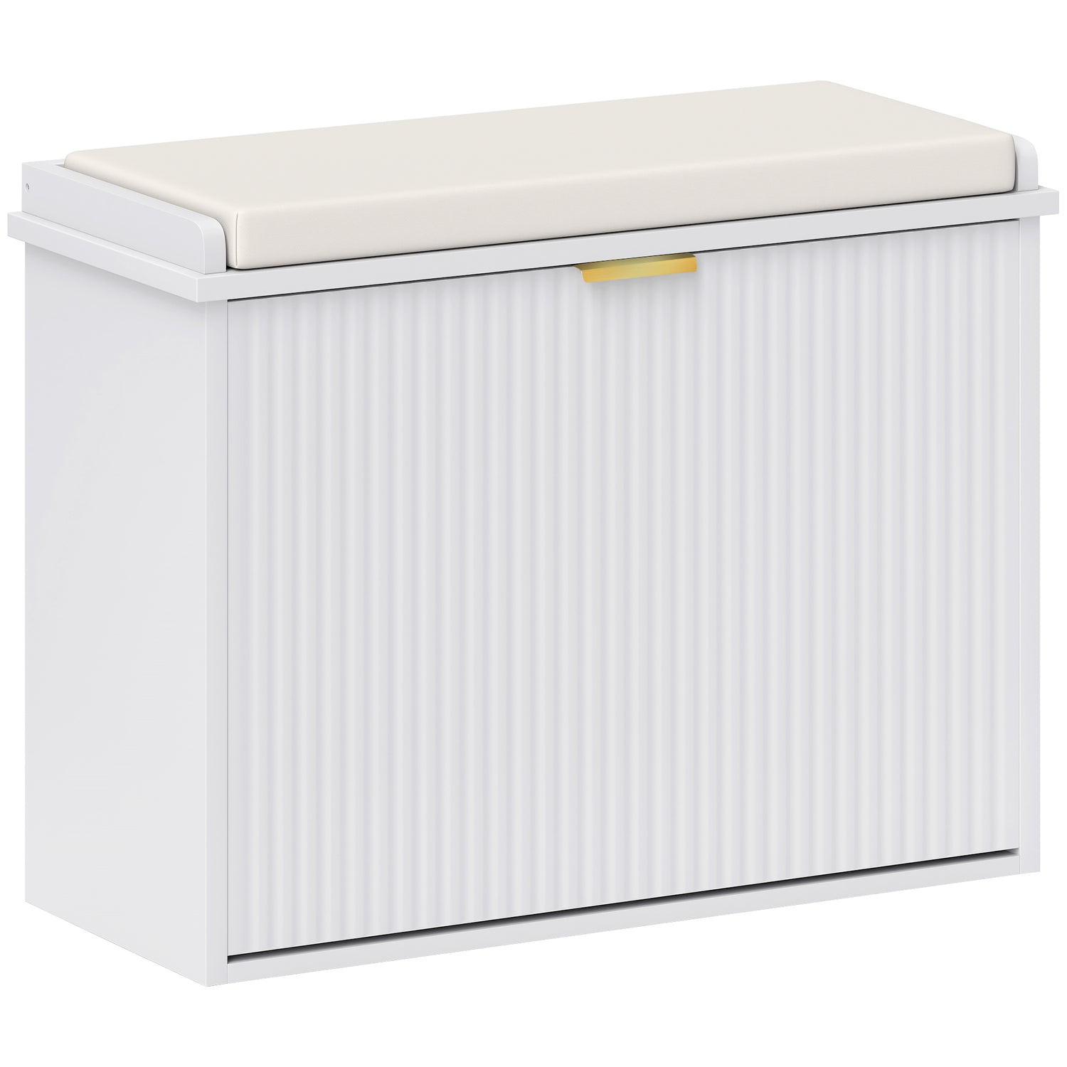 HOMCOM Elegant Six Shoe Bench, with Top Seat - White