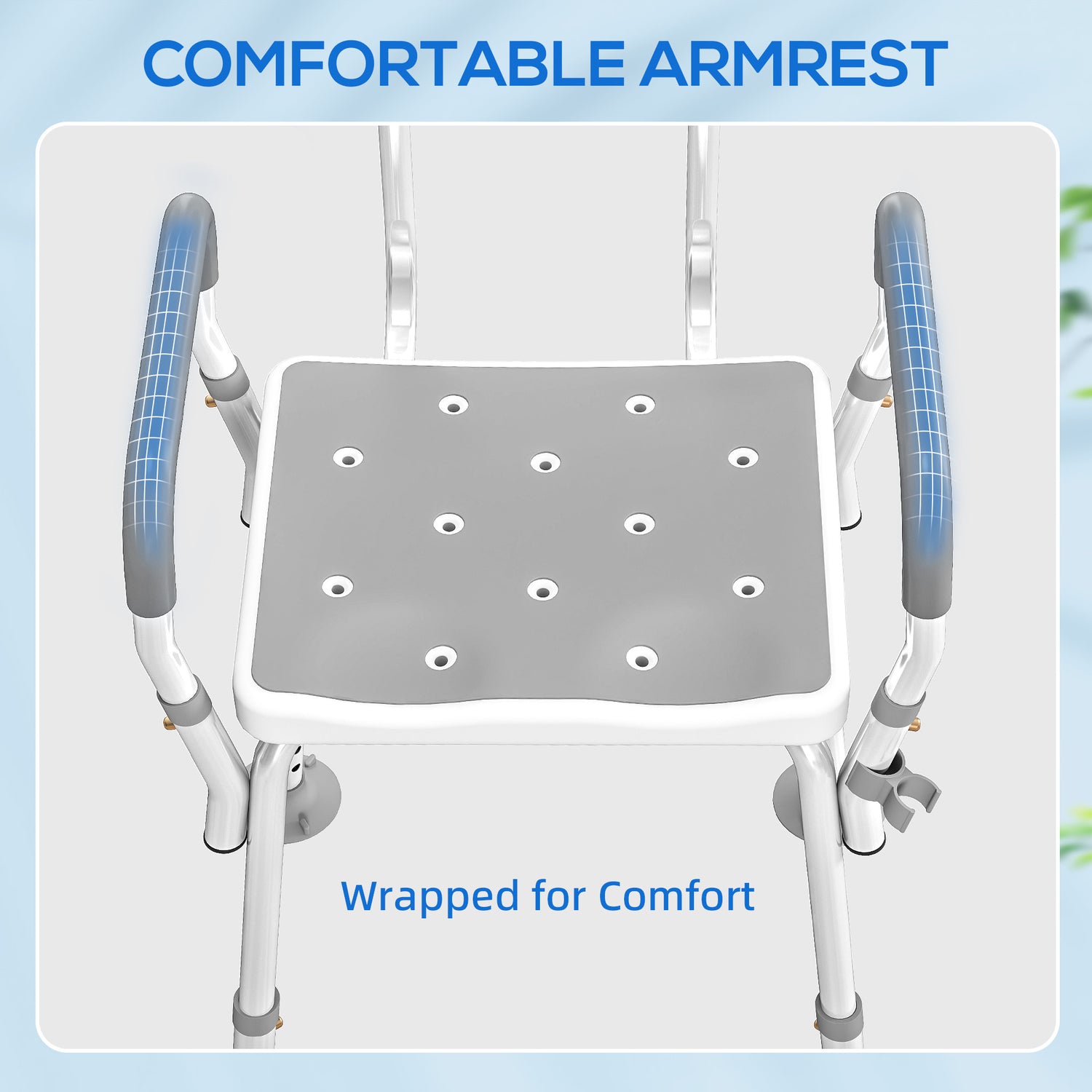 HOMCOM EVA Padded Shower Chair, Height Adjustable with Back & Arms, 4 Suction Foot Pads for Elderly & Disabled, Light Grey