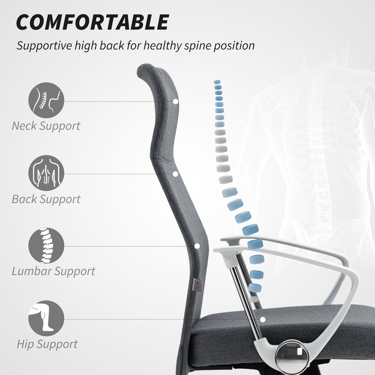 - High and curved back: Experience comfort and support with our office computer chair, designed to follow the natural contour of your spine and support from head to thigh, suitable for long working hours