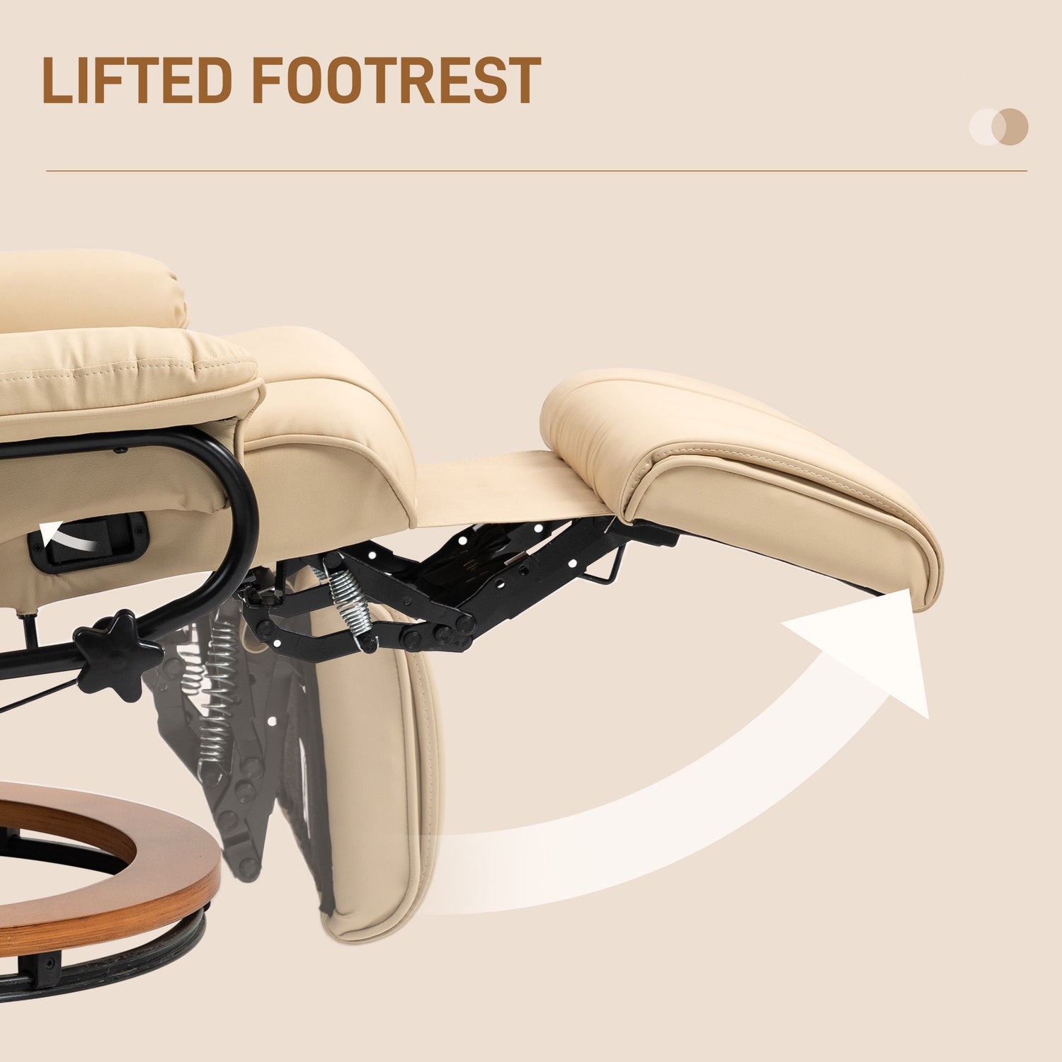 Relaxation whenever, with this HOMCOM swivel recliner. The 135° reclining back allows you to lie back to a position you want, with a footrest to elevate your lower body - full body relaxation. Filled with comfortable foam padding, complete with smooth and stylish faux leather upholstery.