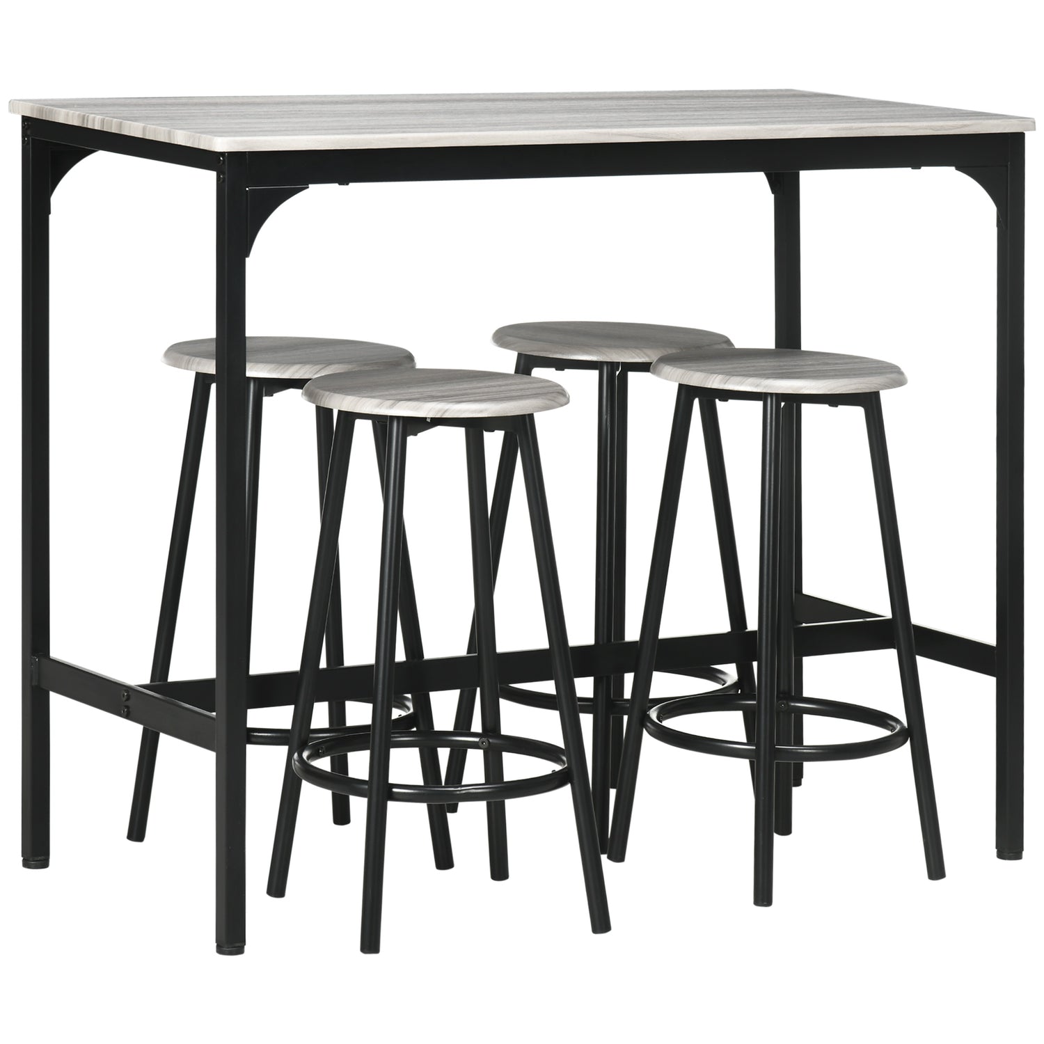 HOMCOM Five-Piece Industrial-Style Bar Table Set - Grey/Black