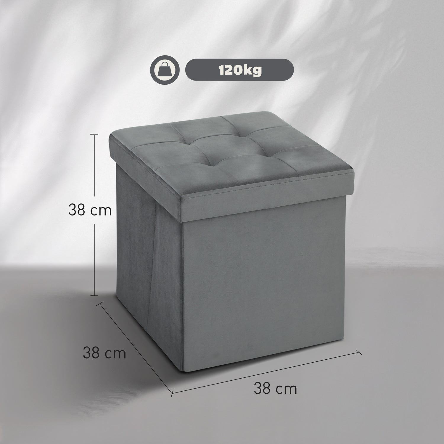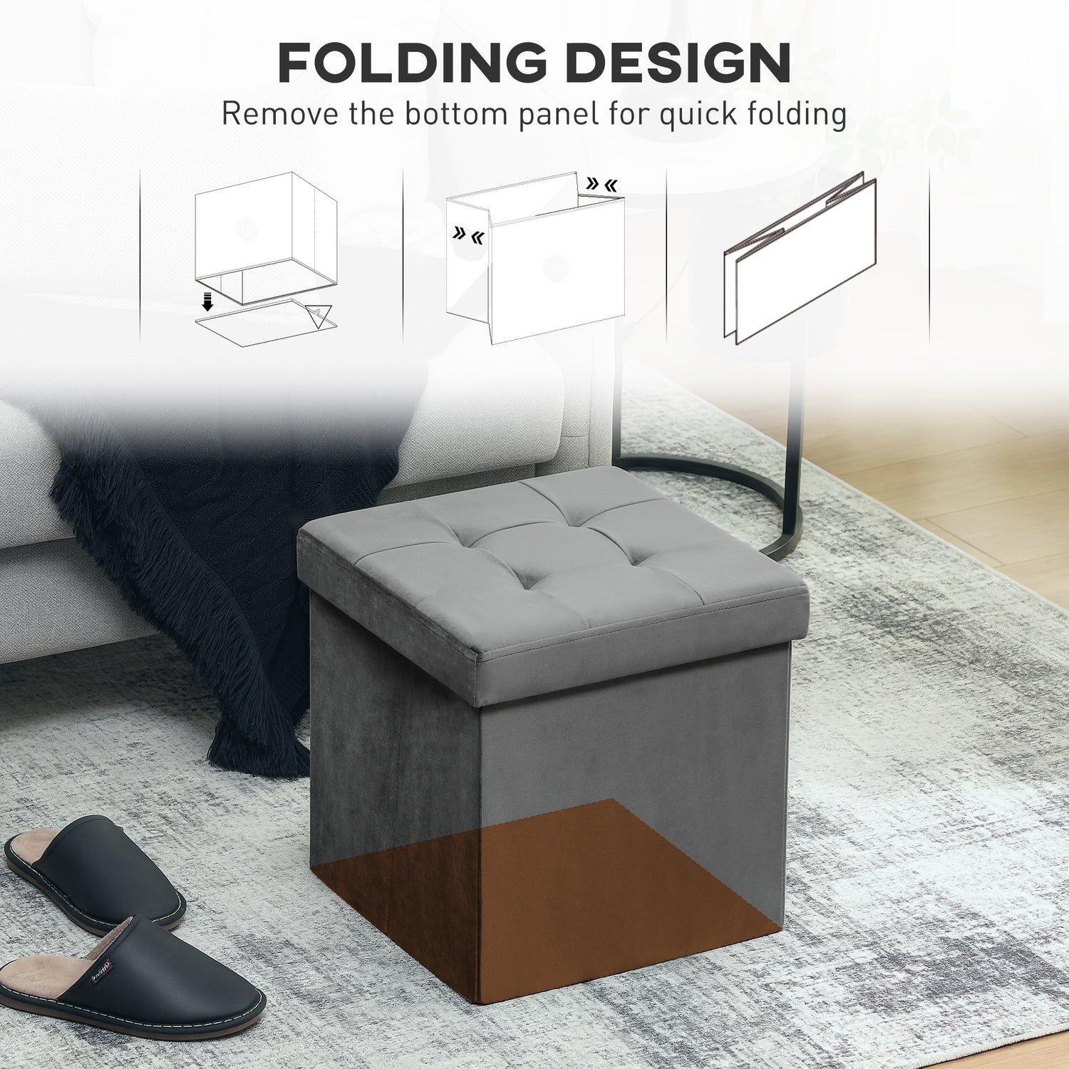 HOMCOM Foldable Velvet-Feel Storage Ottoman - Grey