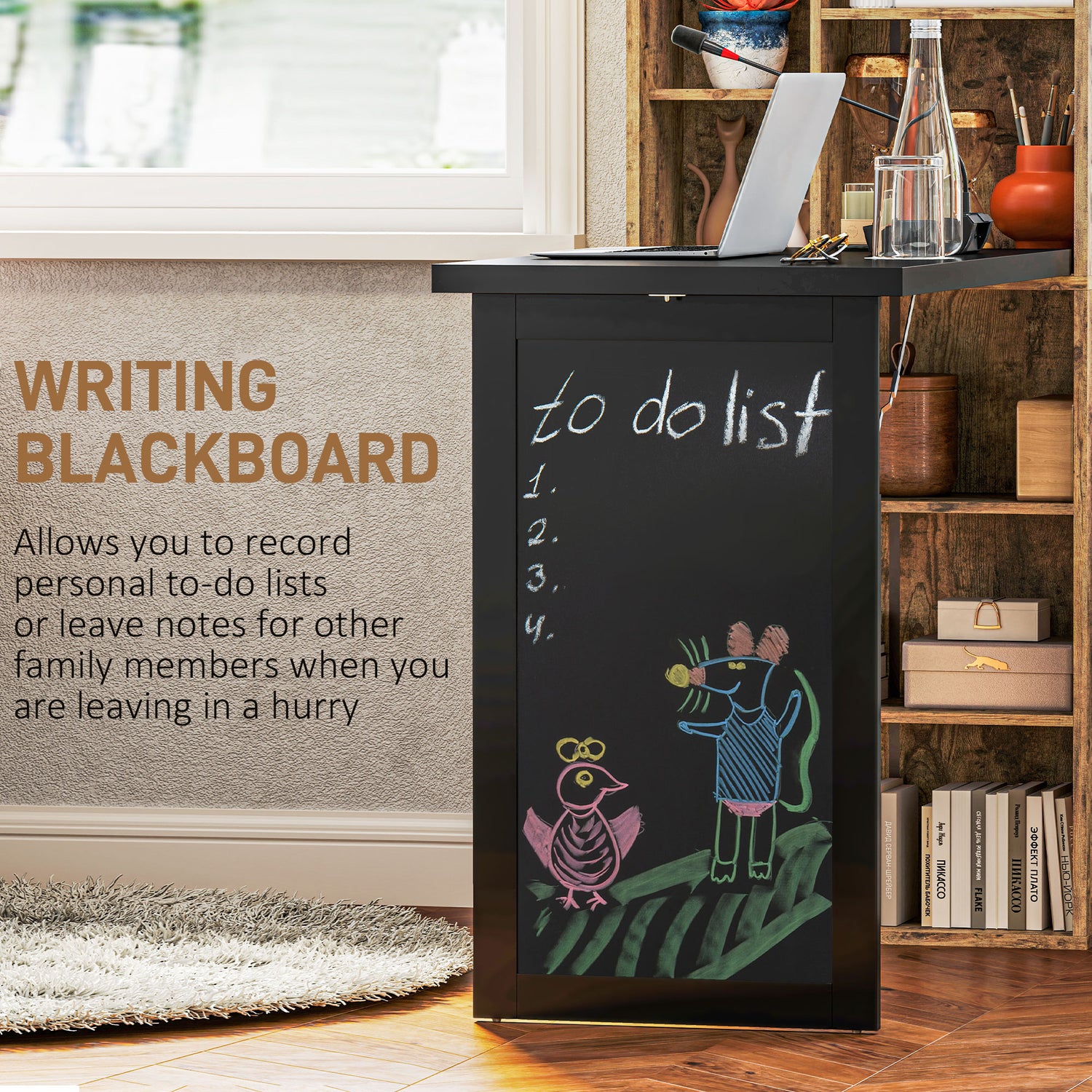 HOMCOM Folding Desk with Blackboard Multi-function Computer Office Workstation Side Shelf for Home Office, Rustic Brown