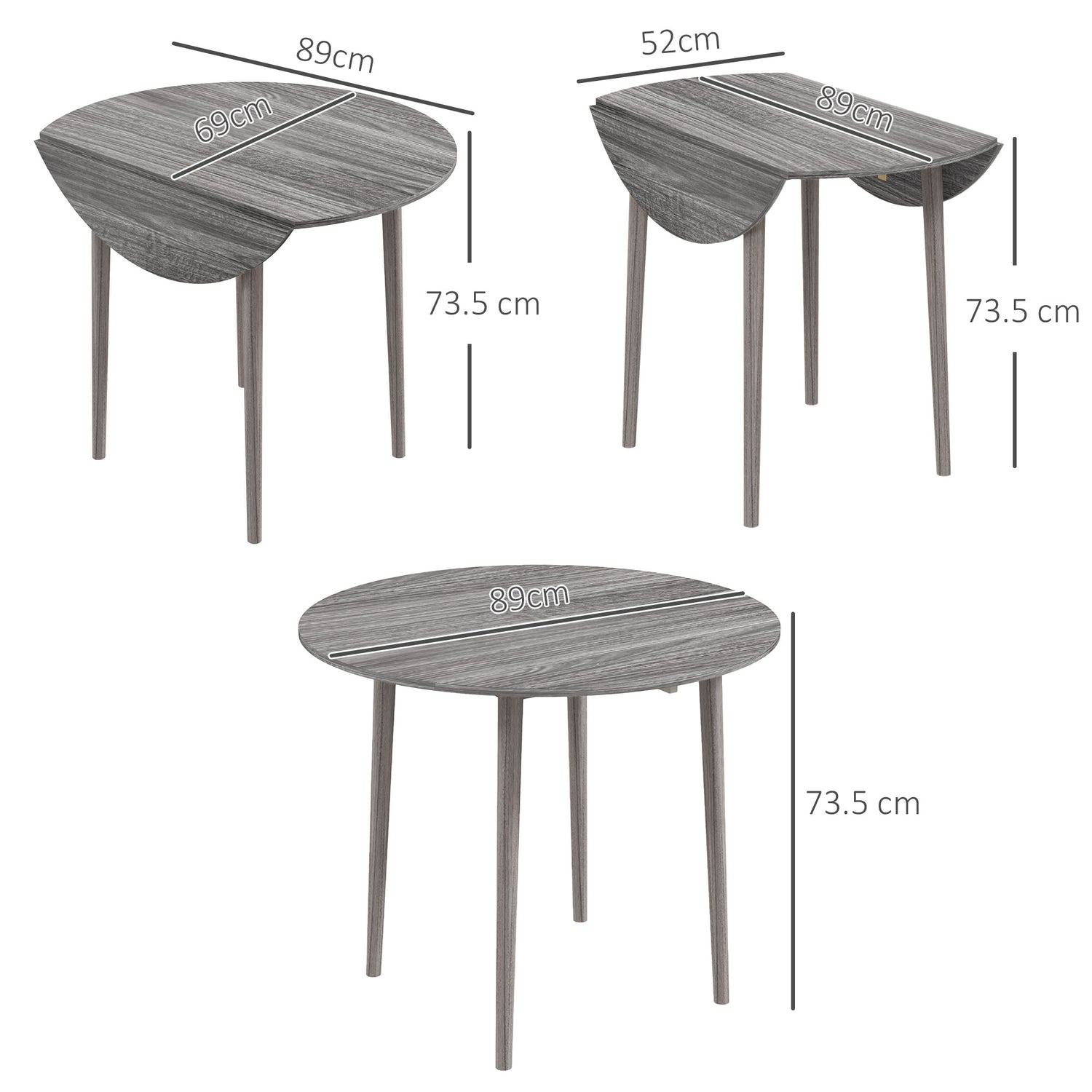 HOMCOM Folding Dining Table for 4, Round Drop Leaf Table, Modern Space Saving Small Kitchen Table with Wood Legs for Dining Room, Grey
