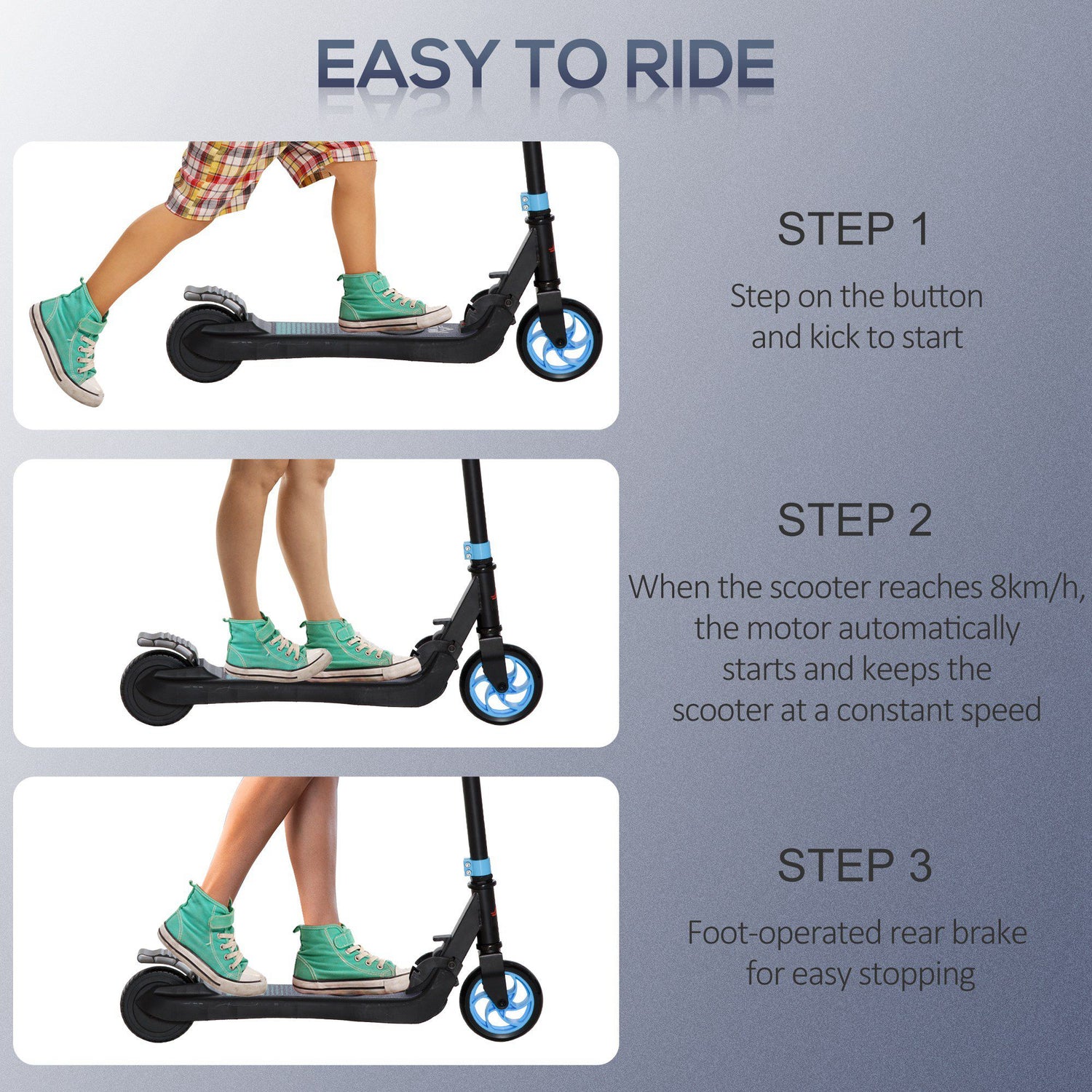 Ride in style with the HOMCOM folding electric scooter, making outdoors super exciting. After charging for 2-3 hours, it can travel for 6km, with a maximum speed of 8km/h. Featuring an all-steel frame and fork, it's a stable ride that stands up to rugged use. The rear wheel brake brings the foldable scooter to a swift stop, promoting safe riding. Embark on exciting adventures, elevate fun and create cherished childhood memories.