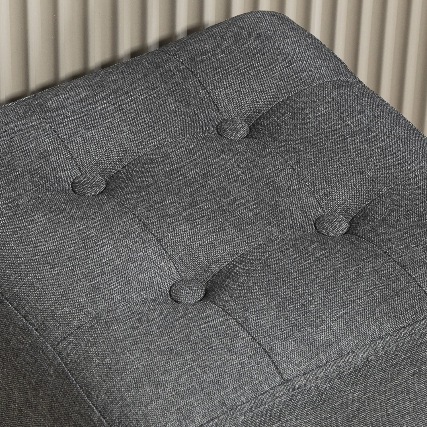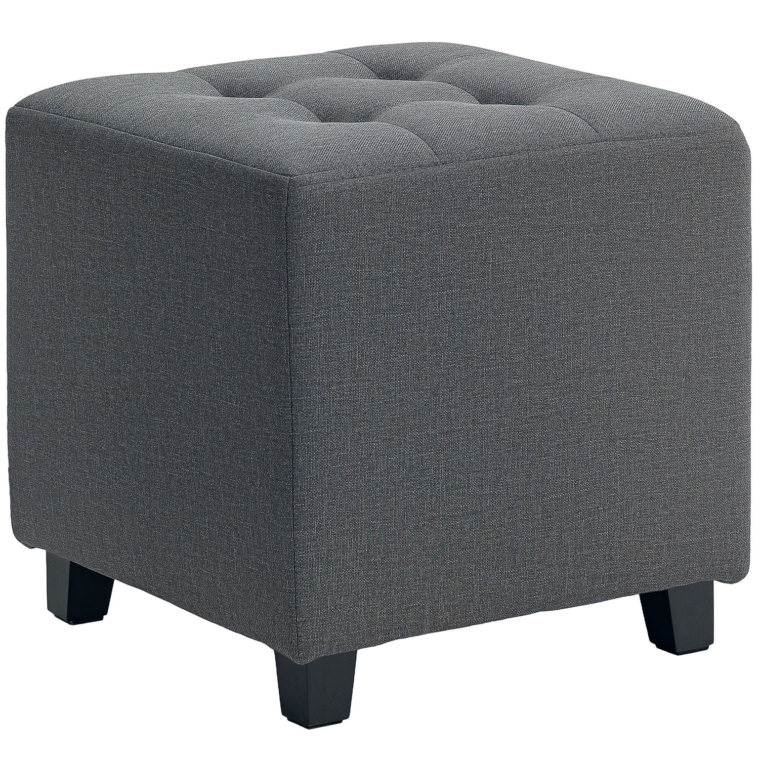 HOMCOM Footstool Ottoman, Linen Fabric with Side Pocket, Rubber Wood Legs, 35x35cm, Grey