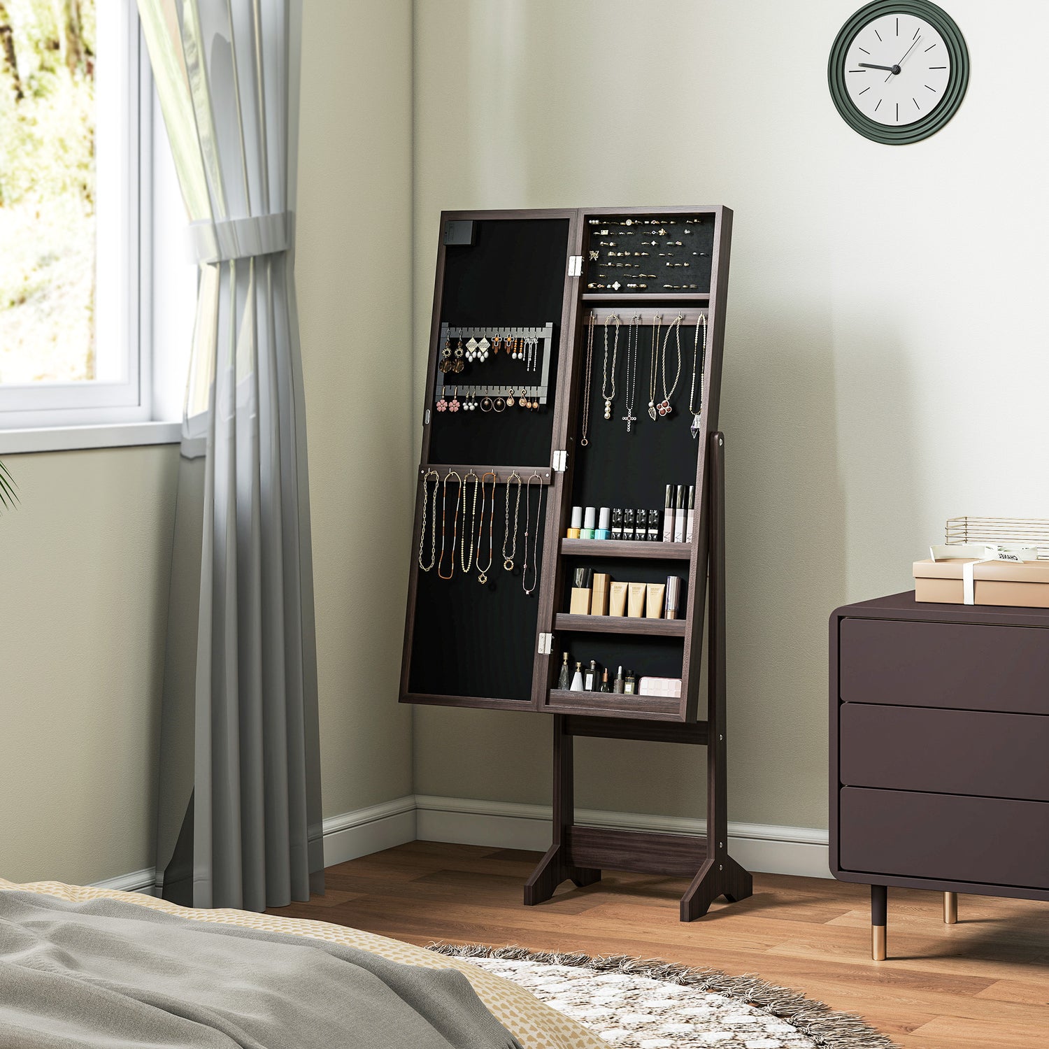 HOMCOM Freestanding Mirror Jewelry Cabinet with LED Lights, Adjustable Angles, Storage for Earrings, Necklaces, Rings, Lipsticks, Dark Brown