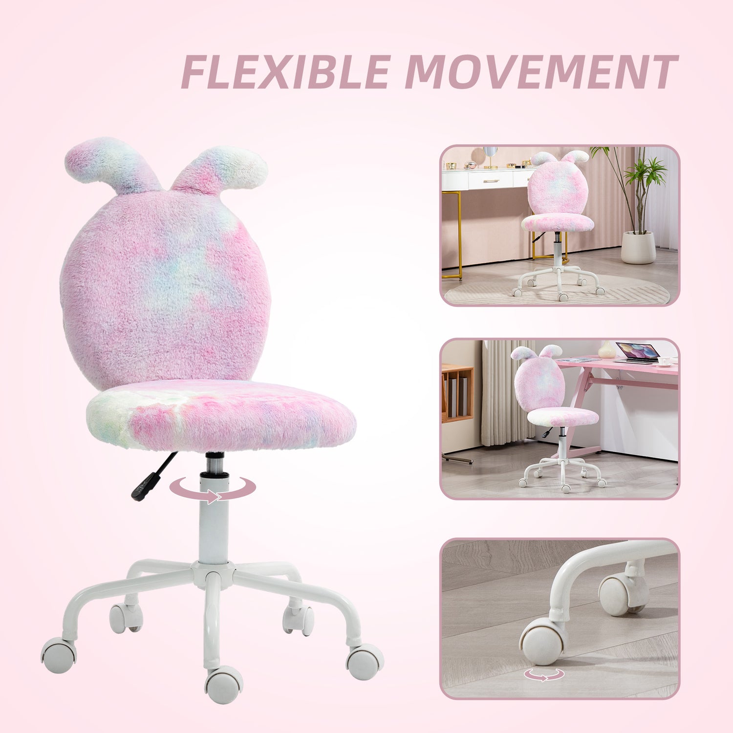 HOMCOM Fuzzy Office Chair with Bunny Ears, Faux Fur Swivel, Armless Vanity Chair, Adjustable Height for Bedroom, Study Room, Colourful