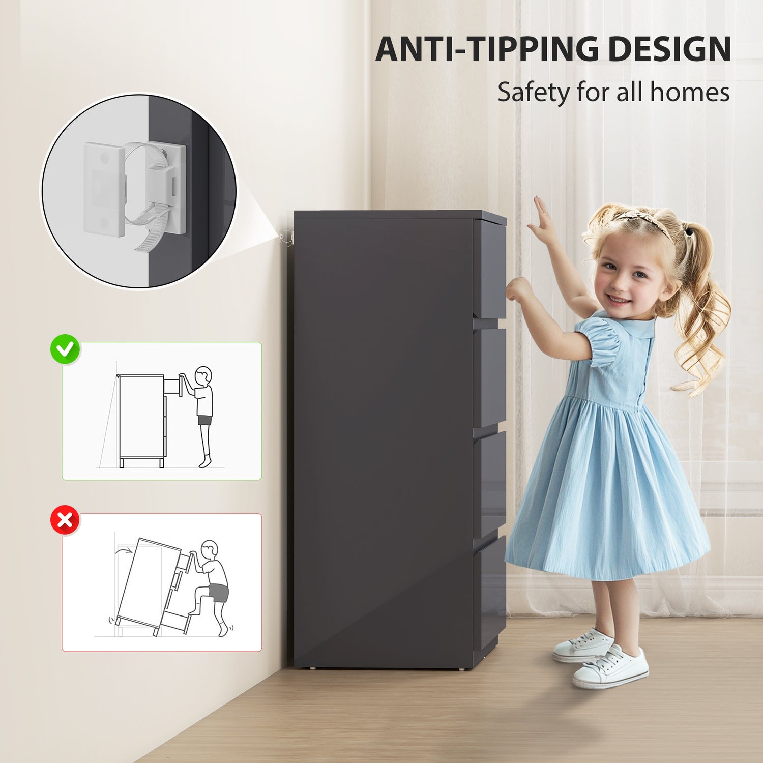 - Anti-tipping straps included: Attach this bedroom chest of drawers to the wall to prevent it from tipping forward.