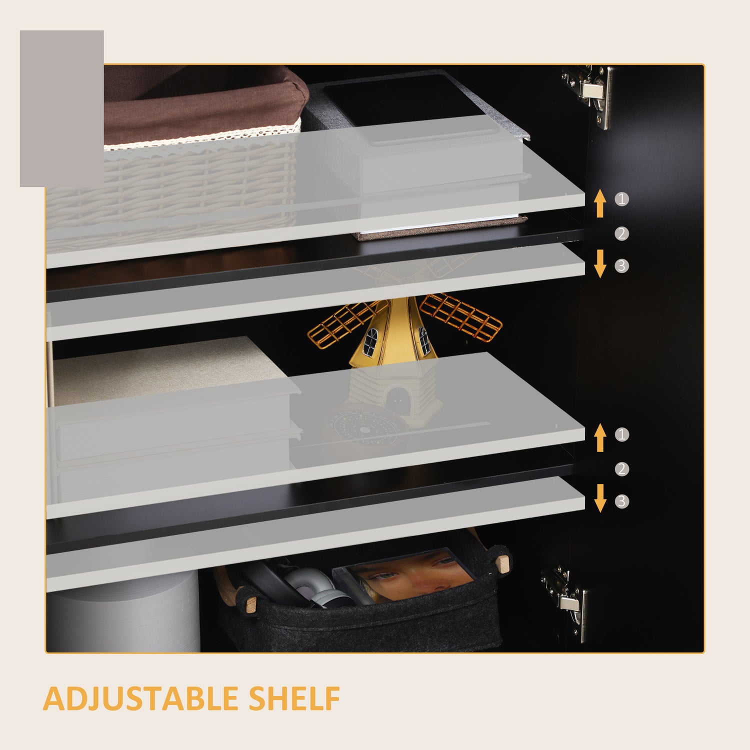 - Inner storage: Black sideboard comes with three shelves, making it easy to store and organise.