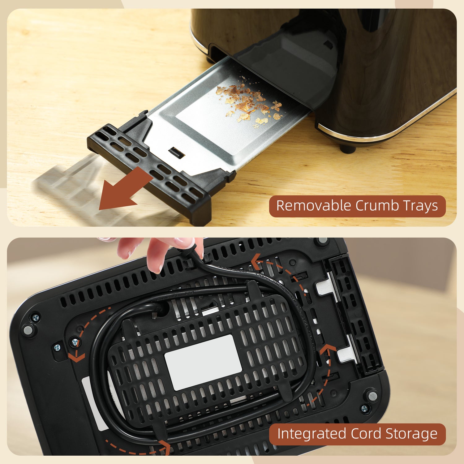 - Versatile toaster: Equipped with reheat, defrost and cancel functions, this two-slice black toaster offers seven browning levels and a high lift design for easy removal of small slices.