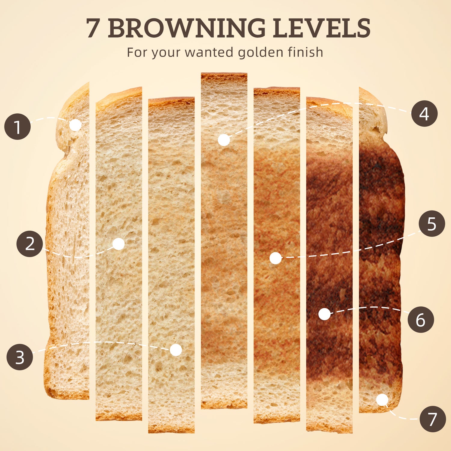 - Toast 4 slices with dual controls and 7 browning controls
