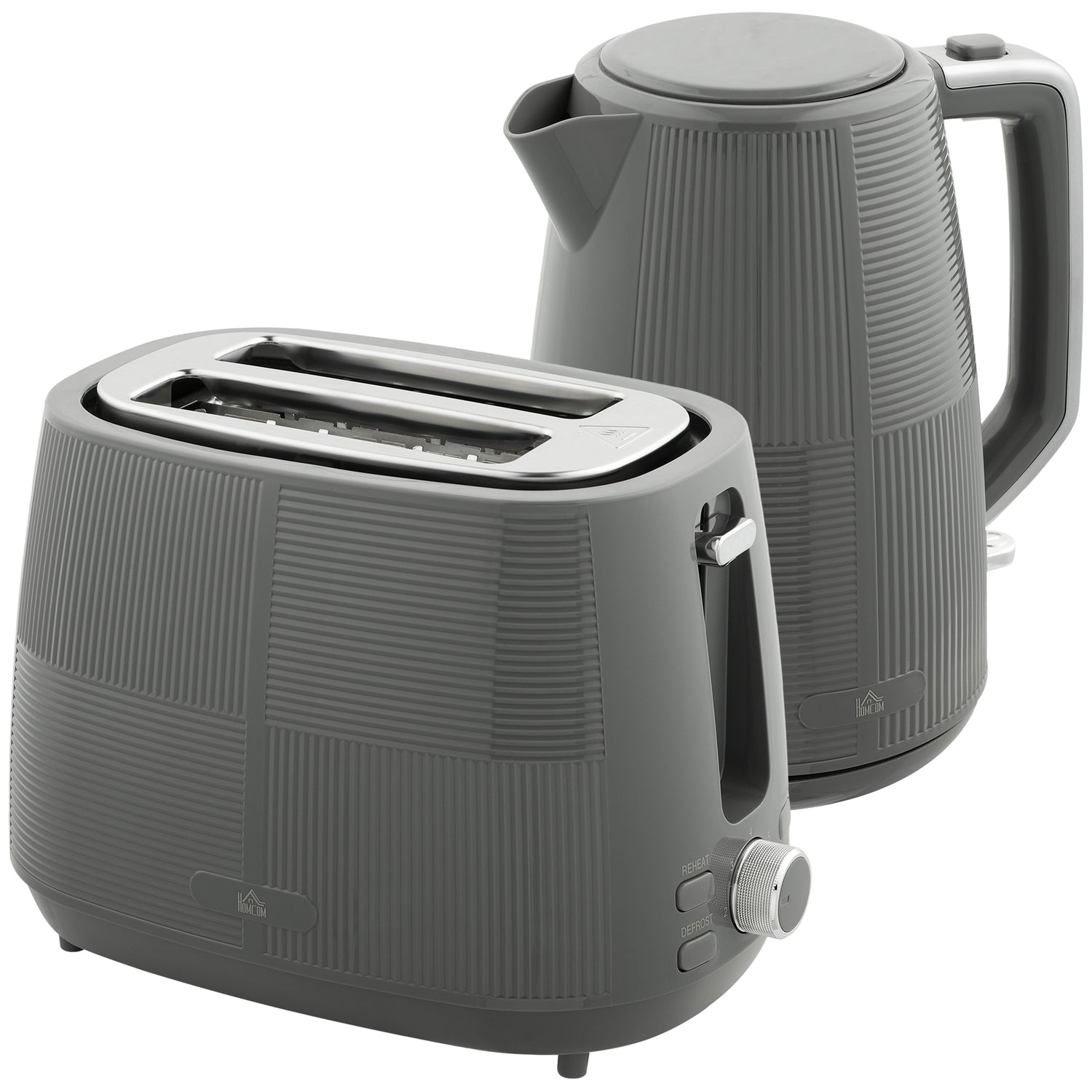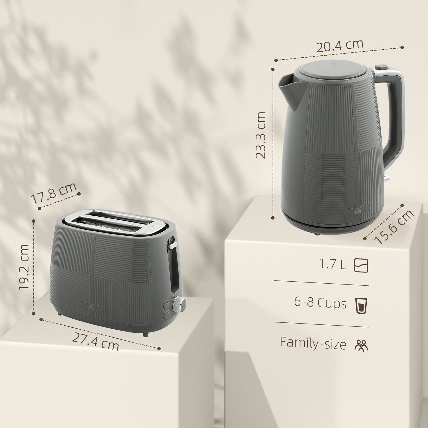 HOMCOM Kettle & Toaster Set, 1.7L Fast Boil Kettle & 2 Slice Toaster with 7 Levels, Grey