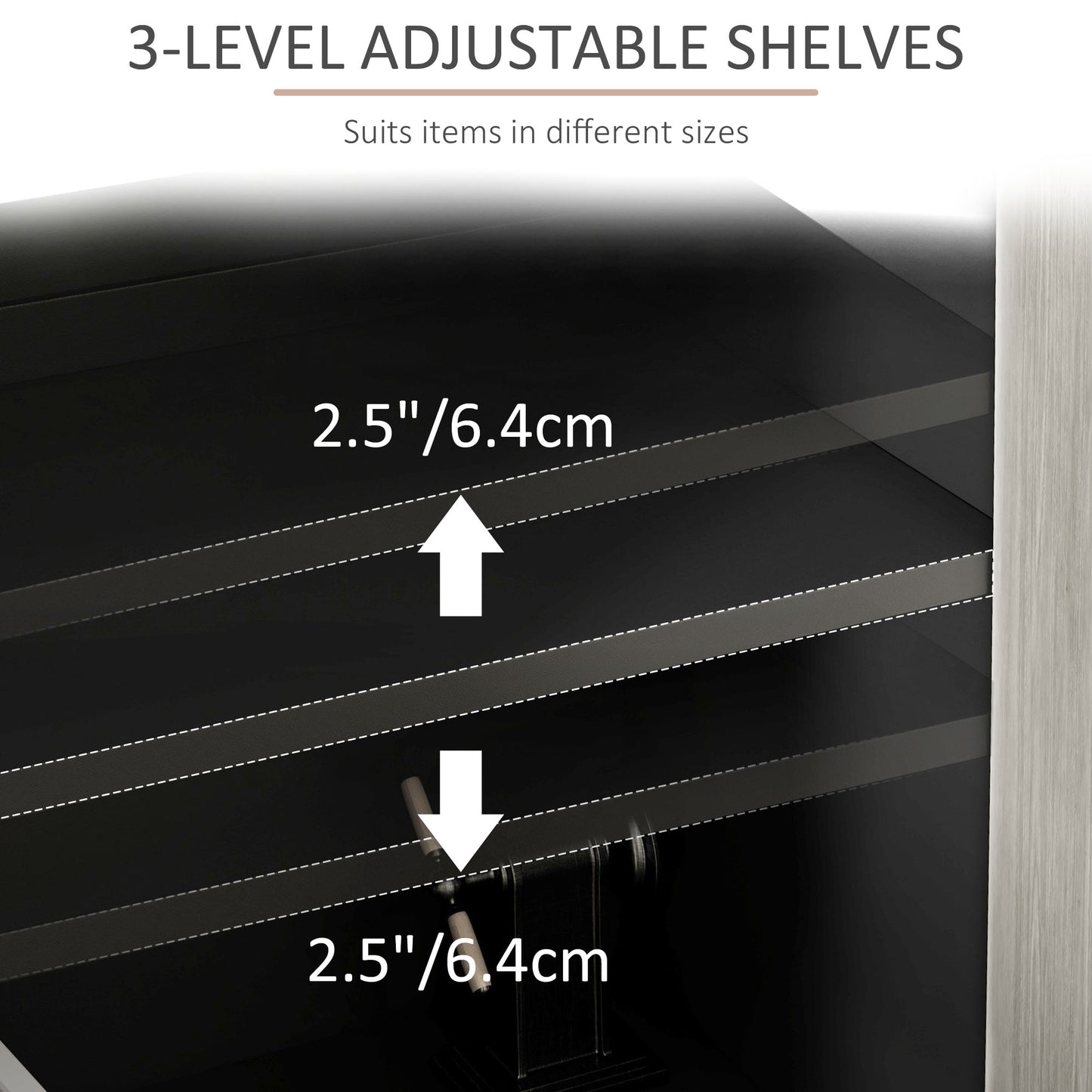 Your home staple, made stylish. Not just a piece to love looking at, but this HOMCOM storage sideboard keeps your home tidy. Four doors open to reveal a middle shelf in the two compartments, creating four individual areas; great for organising crockery, boxes and more. The flat table top is ideal for your favourite pieces, in full display. Show off photos, trinkets and more. The push-open doors are a handy finishing touch.
