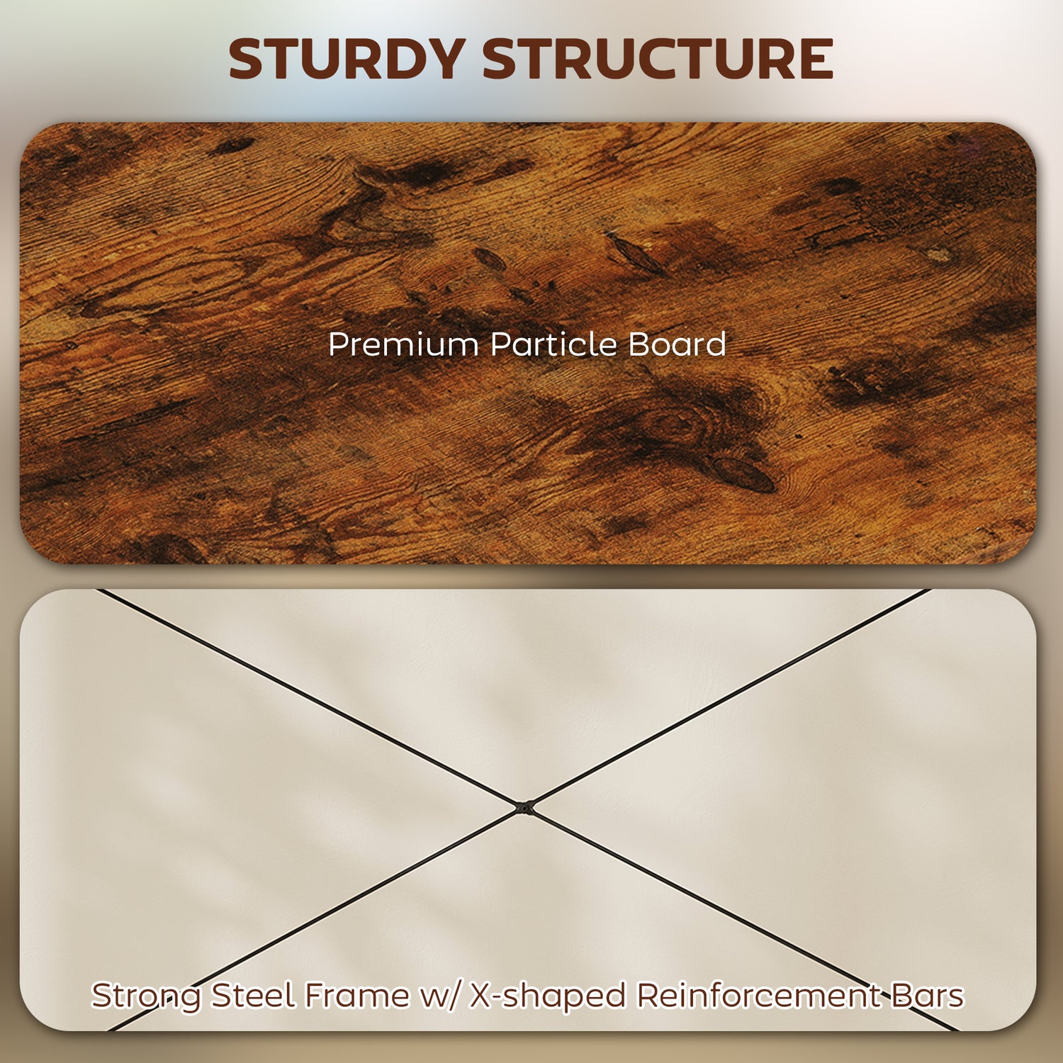 - Robust construction: Consists of particle board and powder-coated steel frame with X-shaped reinforcement poles at back. The adjustable footpads under the home office desk ensure stability and protect your floor from scratches.