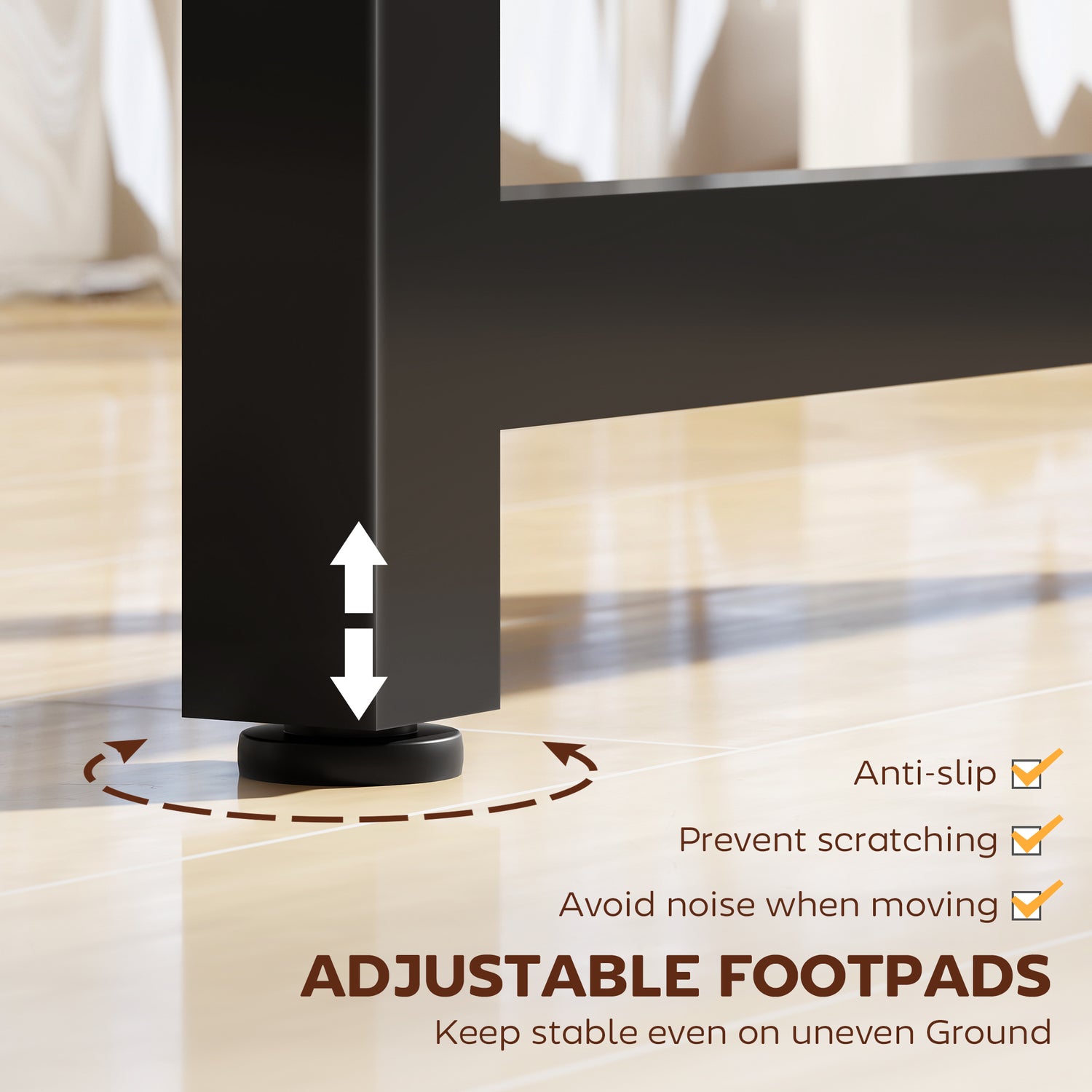 - The screwed footpads is slightly adjustable for stable standing and can prevent scratch