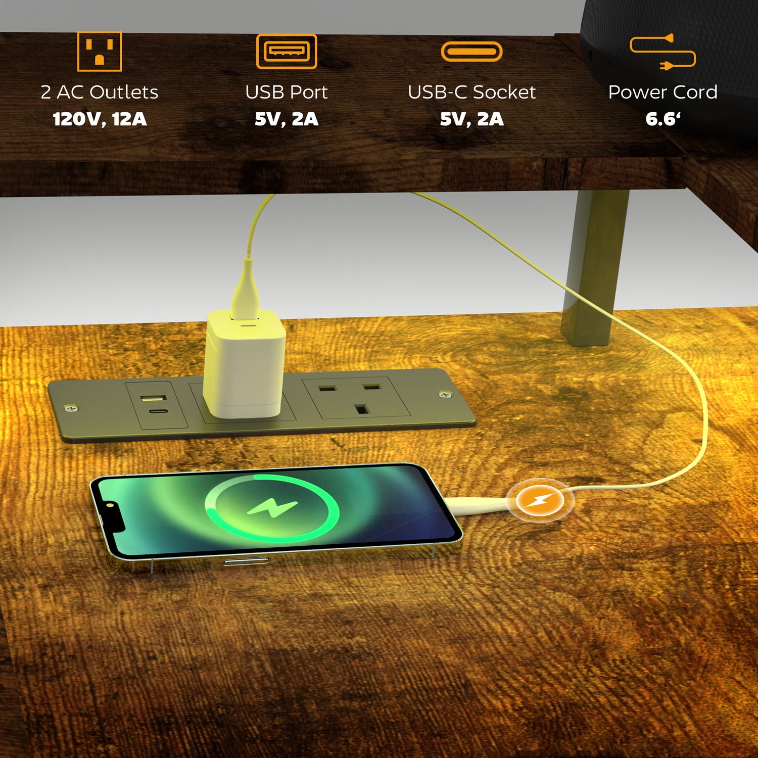 - Two standard outlets, a USB port and a USB-C port for convenient charging