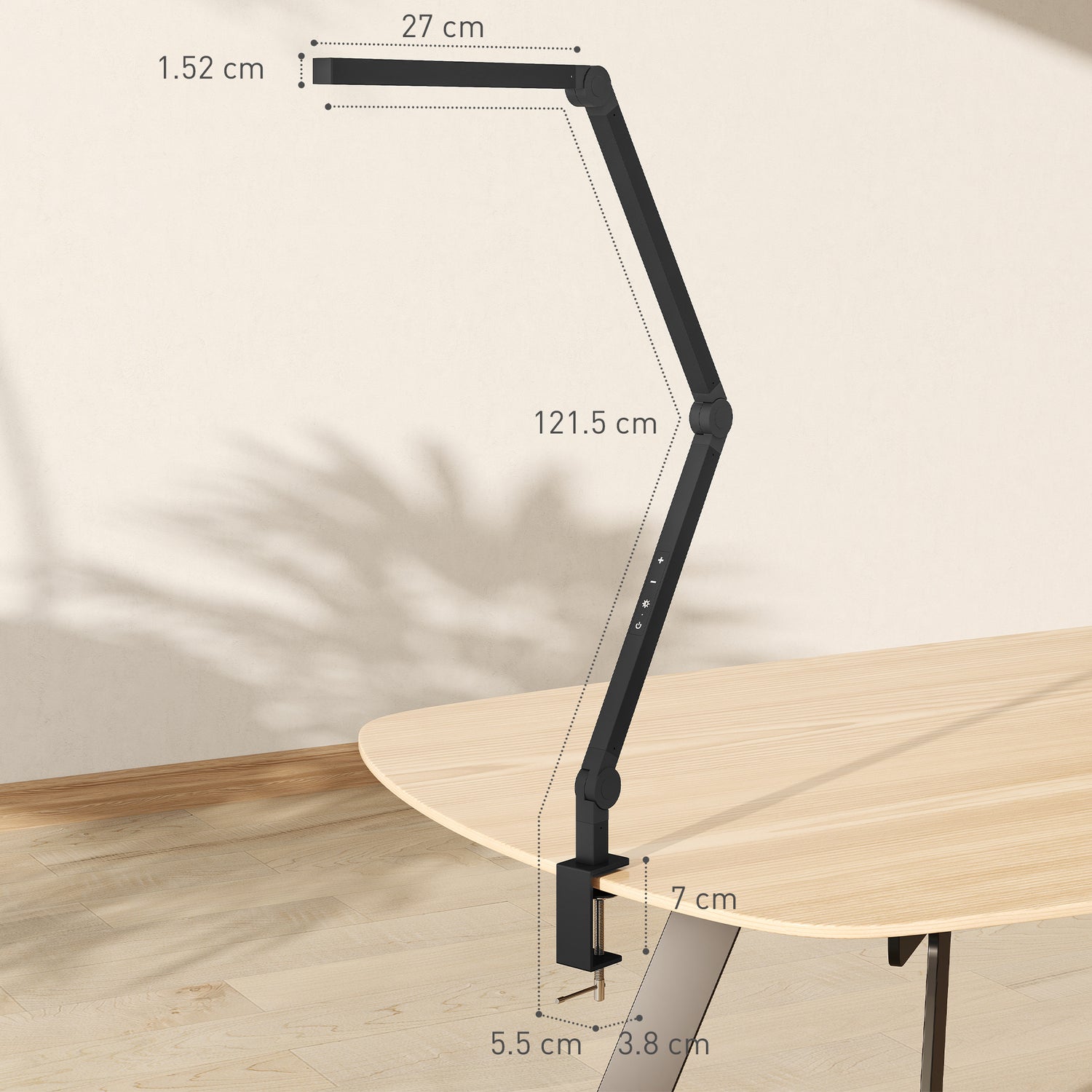 HOMCOM LED Desk Lamp, Dimmable with Swing Arm & Clamp, Adjustable Eye-Caring, 2 Color Modes, 5 Brightness Levels for Study/Office, Black