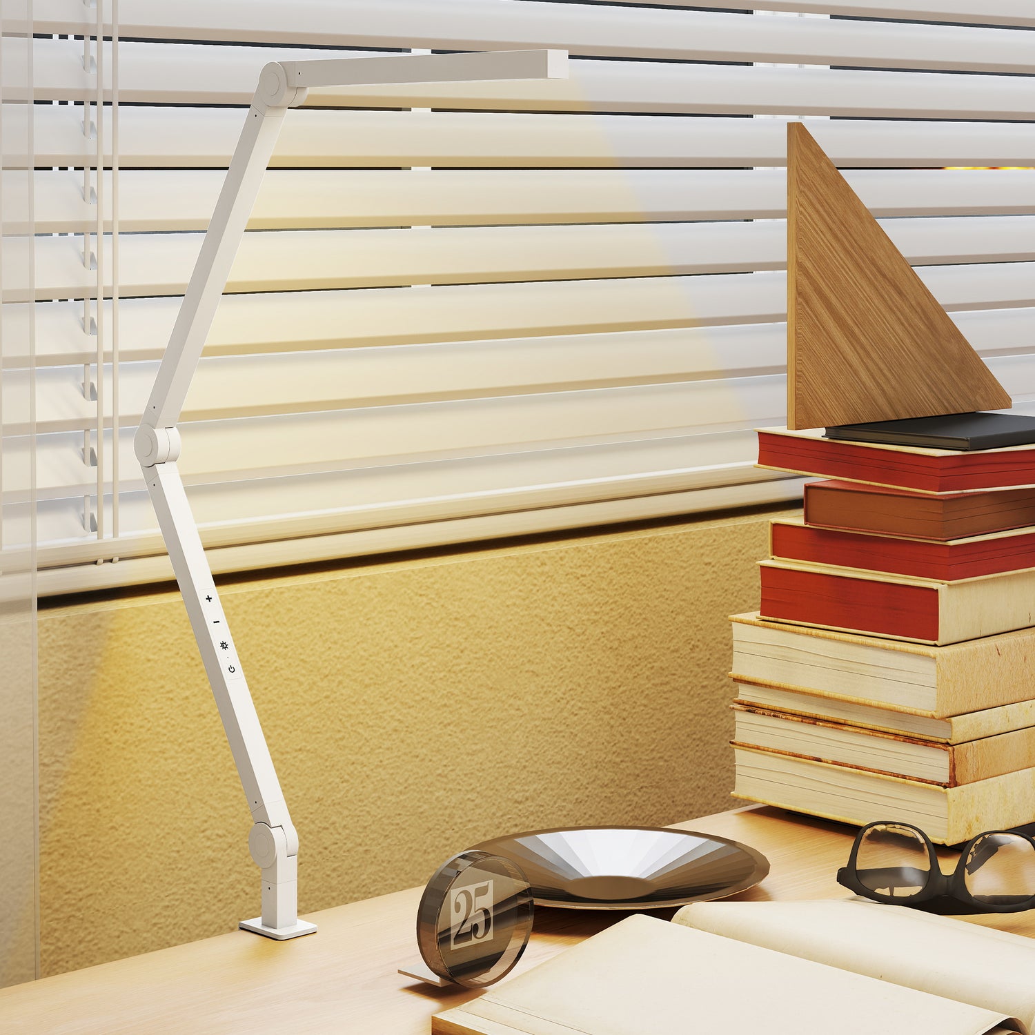 HOMCOM LED Desk Lamp, Dimmable with Swing Arm & Clamp, Adjustable Eye-Caring Light, 2 Colors & 5 Brightness Levels for Office, Study, Task, White