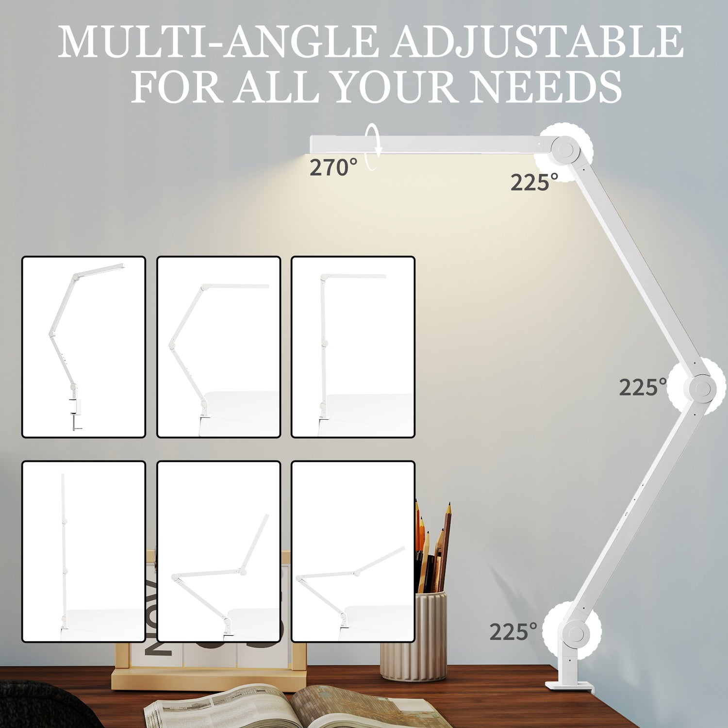 - Space-saving foldable clamp: A clamp secures the lamp to the desk edge, saving valuable space for a tidy workspace. When not in use, fold it away, and next time simply pull it to your preferred angle to resume work