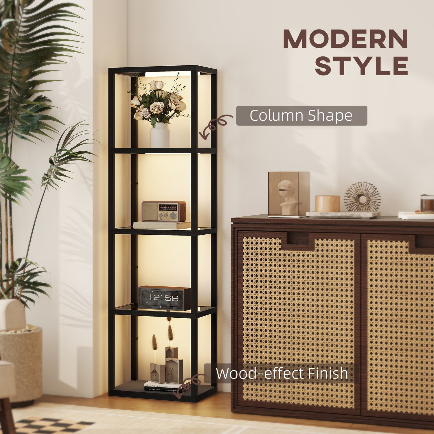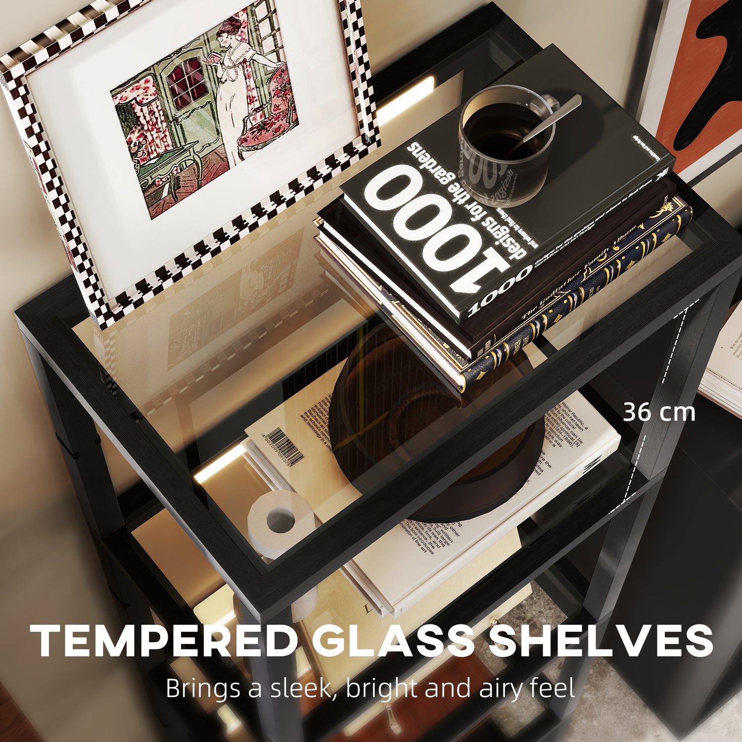 HOMCOM LED Floor Lamp with Glass Shelves, 4 Layers Dimmable Standing Lamp, Modern Column Shelf Light for Living Room, Bedroom, Office, Black