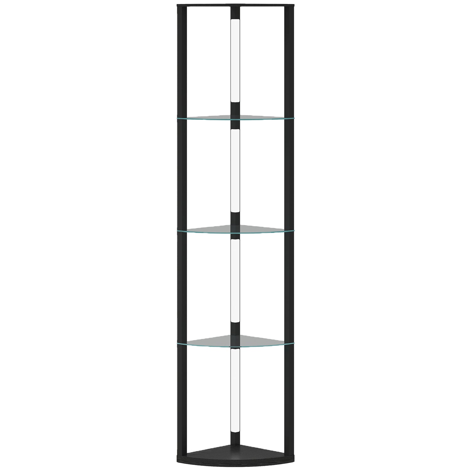 Discover the HOMCOM corner floor lamp, a chic fusion of lighting and storage with five stylish, fan-shaped tiers. Excellent for showcasing books, plants, or ornaments, this standing lamp beautifully illuminates your treasures with its frosted glass shelves. Enjoy effortless control over ambiance with three brightness settings, easily adjusted via a foot switch. Great for any modern home.