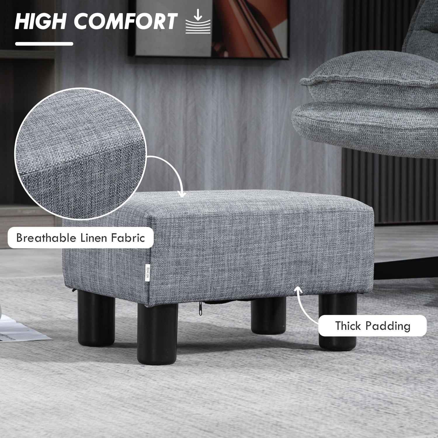 HOMCOM Linen Fabric Footstool Ottoman Cube with 4 Plastic Legs