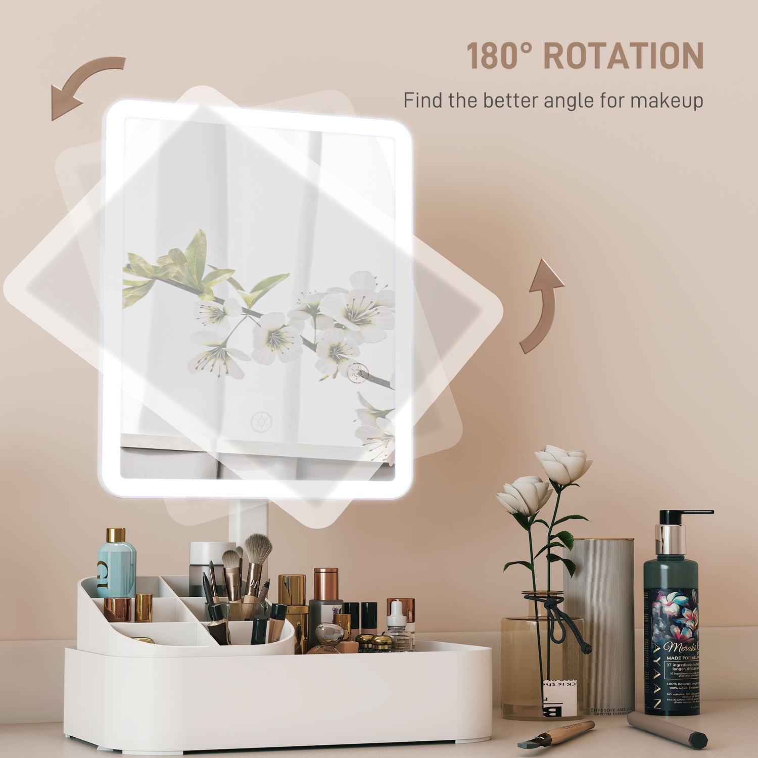 HOMCOM Makeup Mirror with Lights, Rechargeable Vanity Mirror w/ Touch Screen, 2 Lighting Modes and 180° Rotation, White
