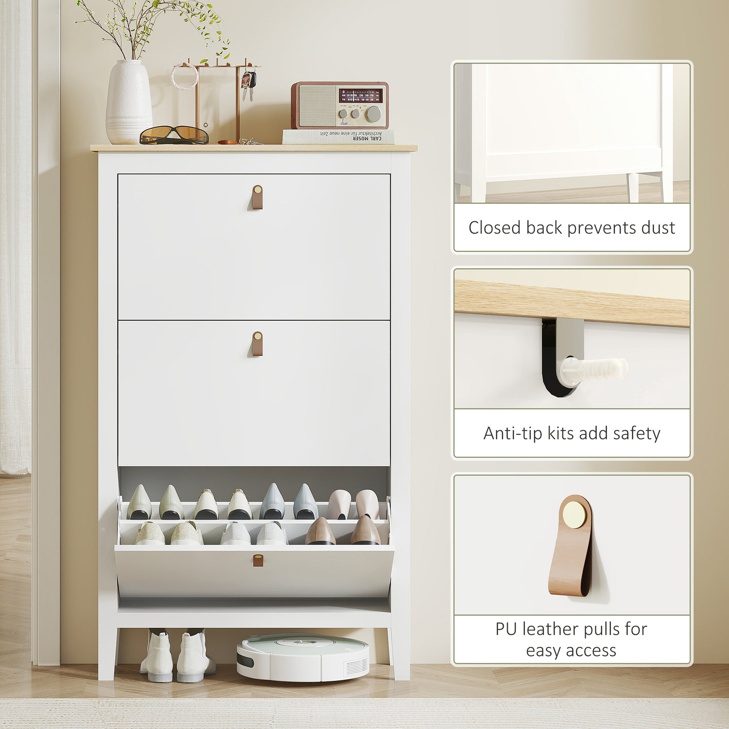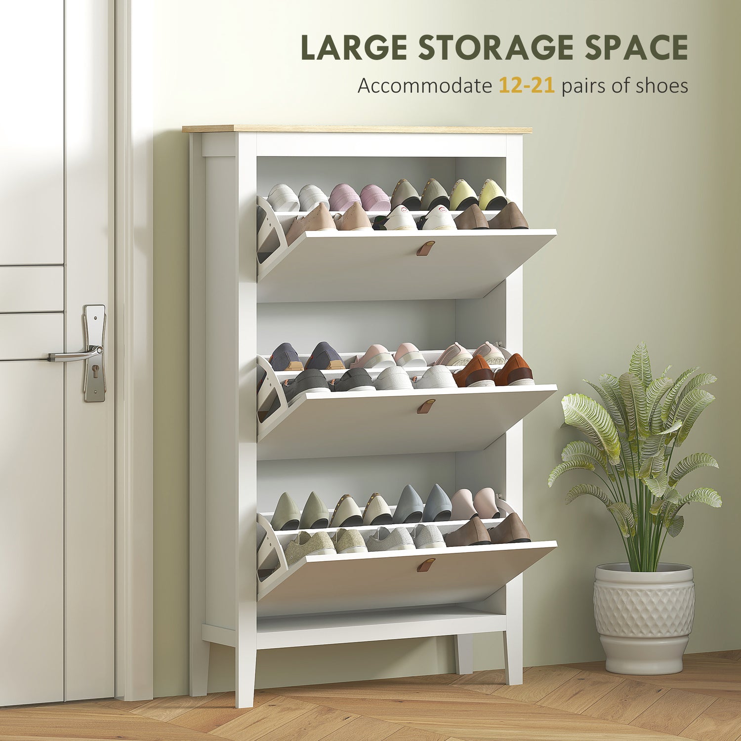 HOMCOM Modern Three-Drawer Shoe Cabinet - White