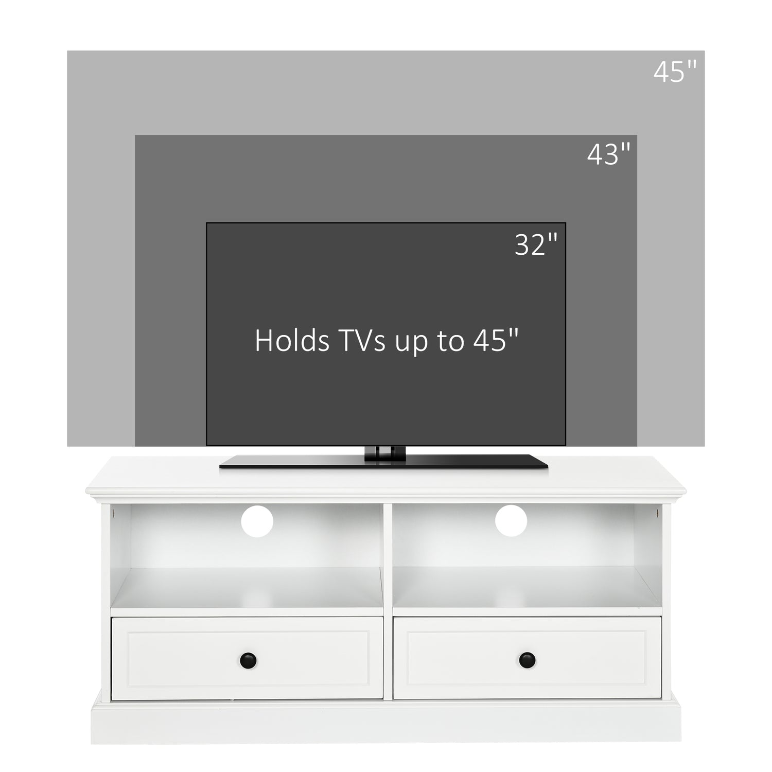 HOMCOM Modern TV Unit Cabinet for TVs up to 45 Inches, TV Stand with Drawers, Open Shelves, Cable Holes for Living Room, White