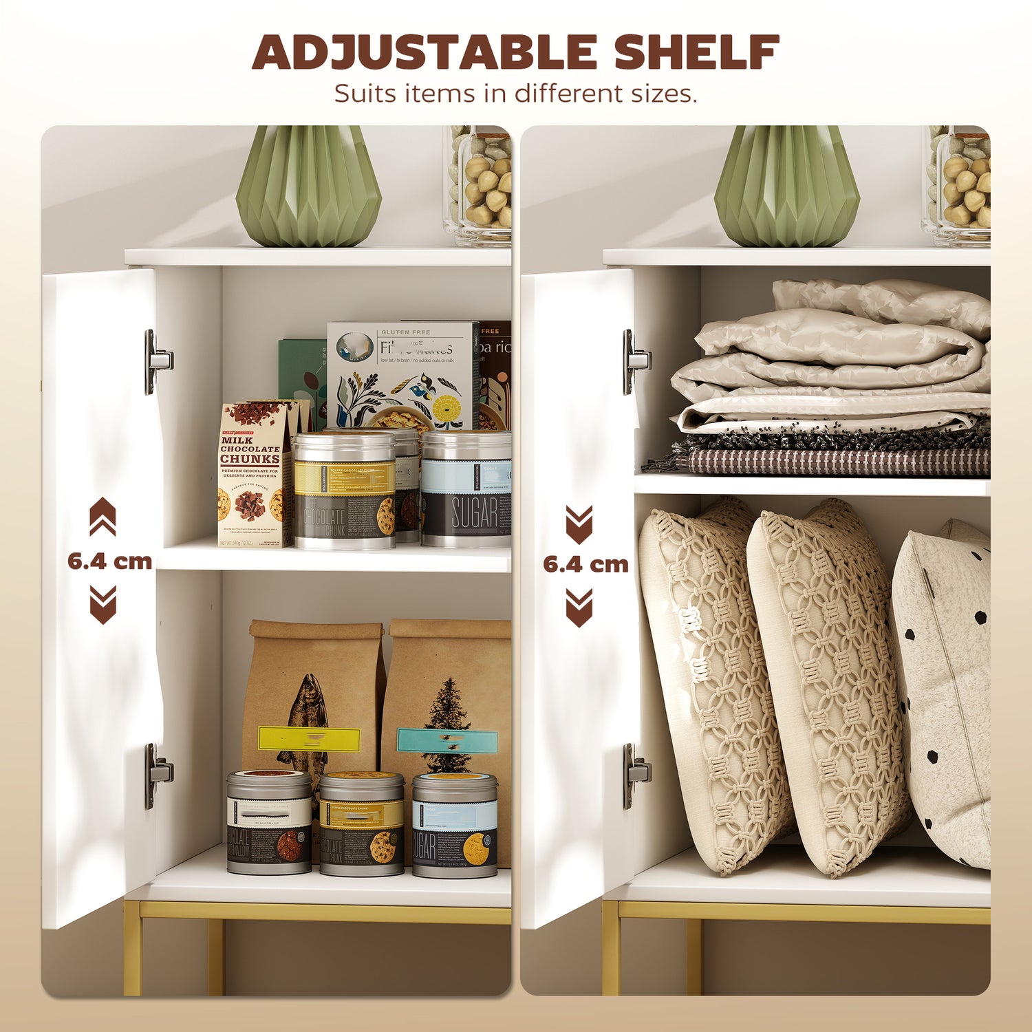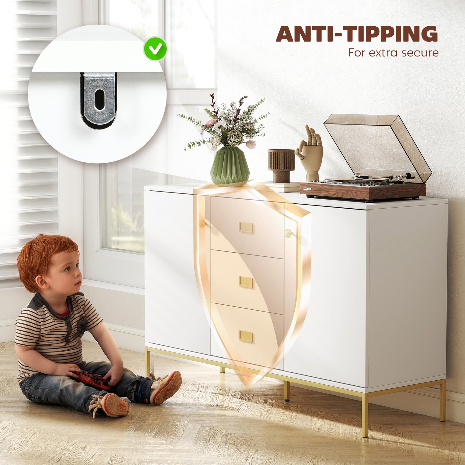 Quickly add storage, in timeless style - this HOMCOM sideboard. The crisp white delivers a modern look to your living space. It has two cupboards and three drawers, so there's plenty of storage for keeping what you need neatly stored and out of sight. The adjustable shelves allow you to fit smaller and items with ease. Complete with an anti-tipping kit for safety.