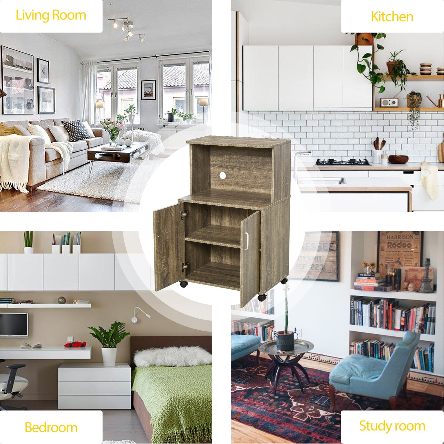 HOMCOM Particle Board Kitchen Pantry Cupboard Kitchen Microwave Cabinet W/Rolling Wheels Oak
