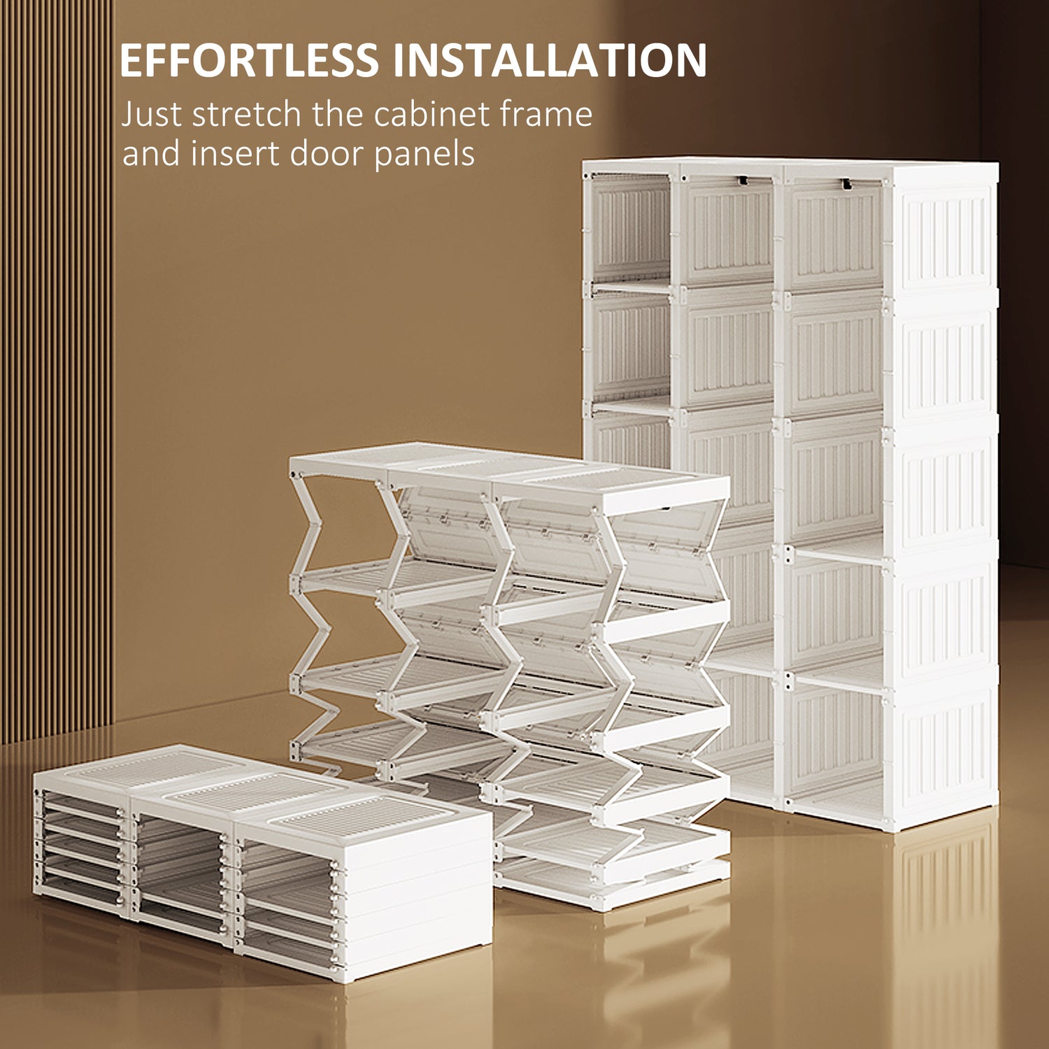Add a touch of simplicity and style to your home with this HOMCOM portable wardrobe. Featuring clear door panels and a bright, modern design, it fits perfectly in your living room or any space. With modular compartments and two hanging areas, it provides lots of storage for your clothing while combining functionality and elegance to meet your needs.