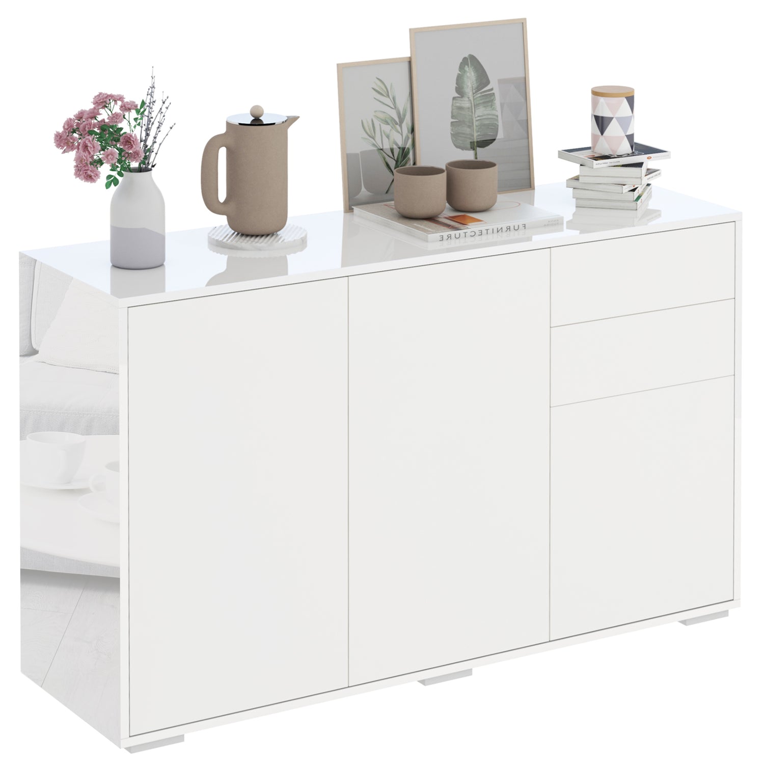 This HOMCOM large and oblong cabinet is a durable and stylish addition to every home, keeping your space clean and tidy with ease. It's made from MDF for a durable structure, with anti-tipping straps on the back for safety. The practical design, with the push-click drawers and cabinet doors makes them quick and effortless to open and close. The elevated base allows air to flow through for freshness. An effortless way to bring in sleek style into your living space.