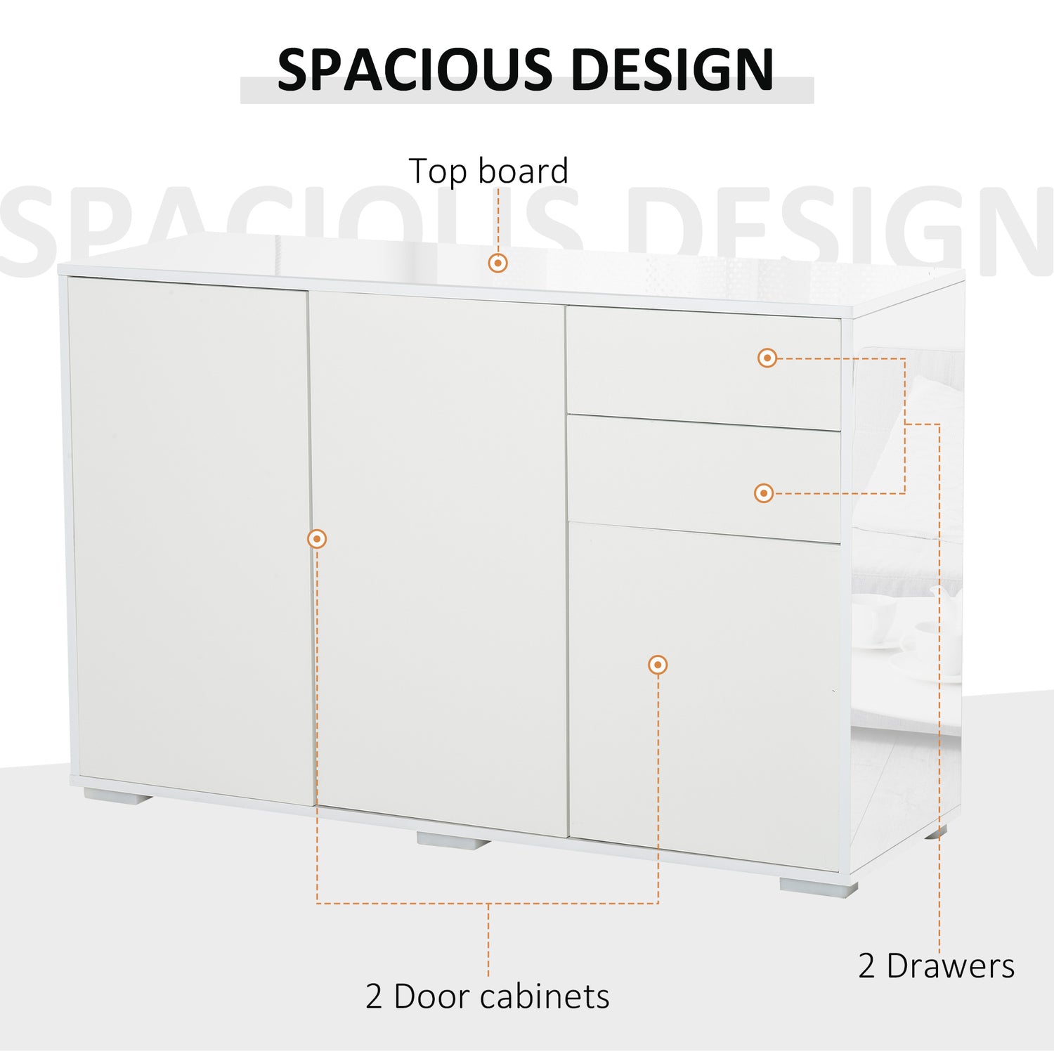 HOMCOM Push-Open Cabinet with 2 Drawer 2 Door Cabinet for Home Office Highlight White
