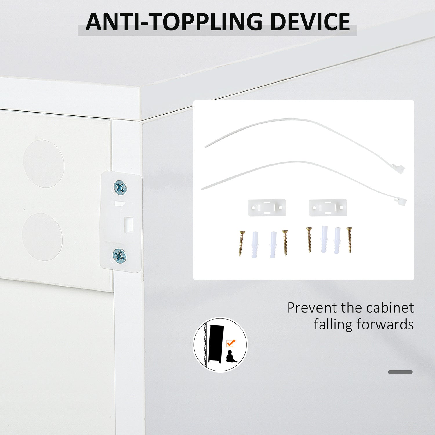 - ANTI-TIPPING DESIGN: This freestanding furniture features an anti-tipping strap and can be fixed to the wall to prevent it from tipping over. DIMENSIONS: 74H x 117W x 36Dcm.
