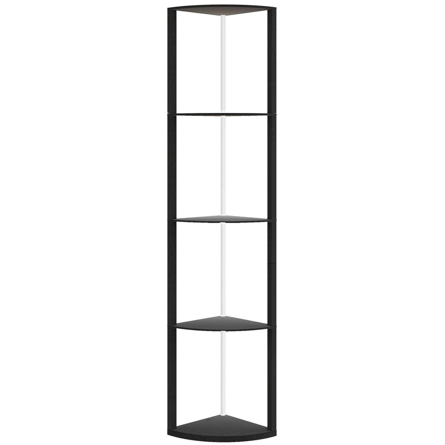 HOMCOM RGB LED Floor Lamp with Shelves, 5-Tier Dimmable Lamp with Remote, Modern Corner Display Shelf for Living Room/Bedroom/Office, Black