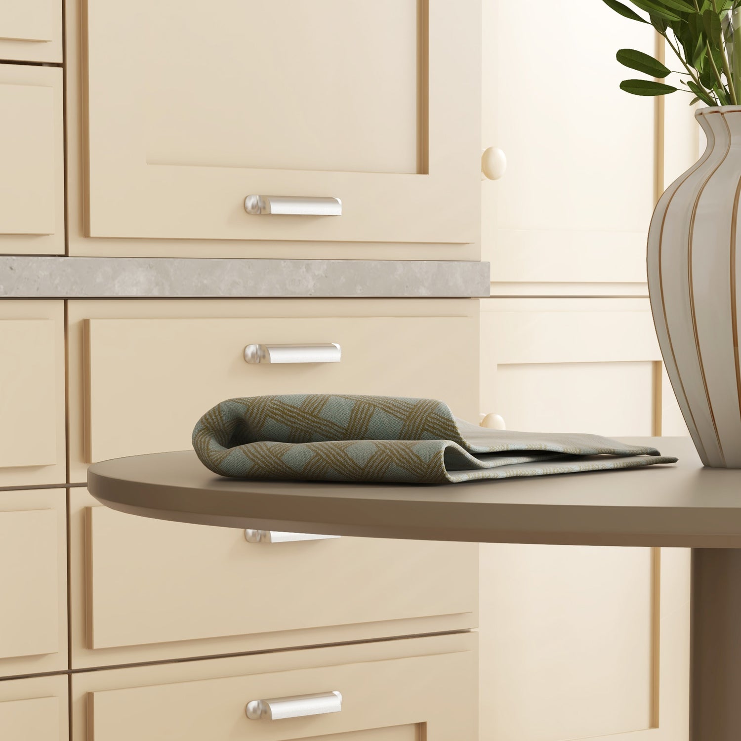 - Neutral colour in a curved round shape: versatile and modern