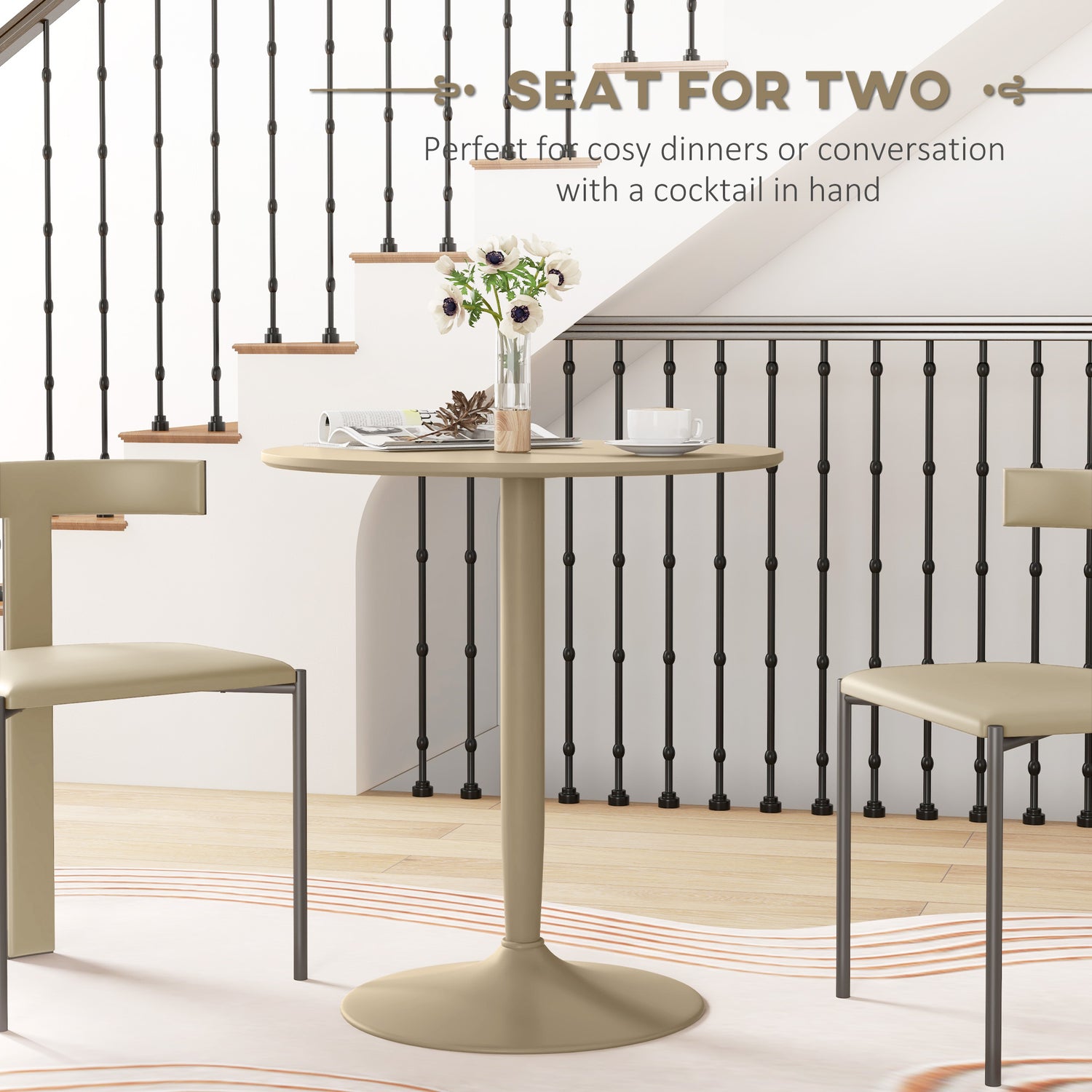 A table for two - your way. This HOMCOM round table is a great piece to relax, dine and unwind with company. A powder coated steel frame for a strong foundation, with the large base to keep the balance. Smoothly curved in a neutral tone, this round table is a simple and modern piece: creates a simple foundation for whatever you want. Complete with non-slip pad on the base.
