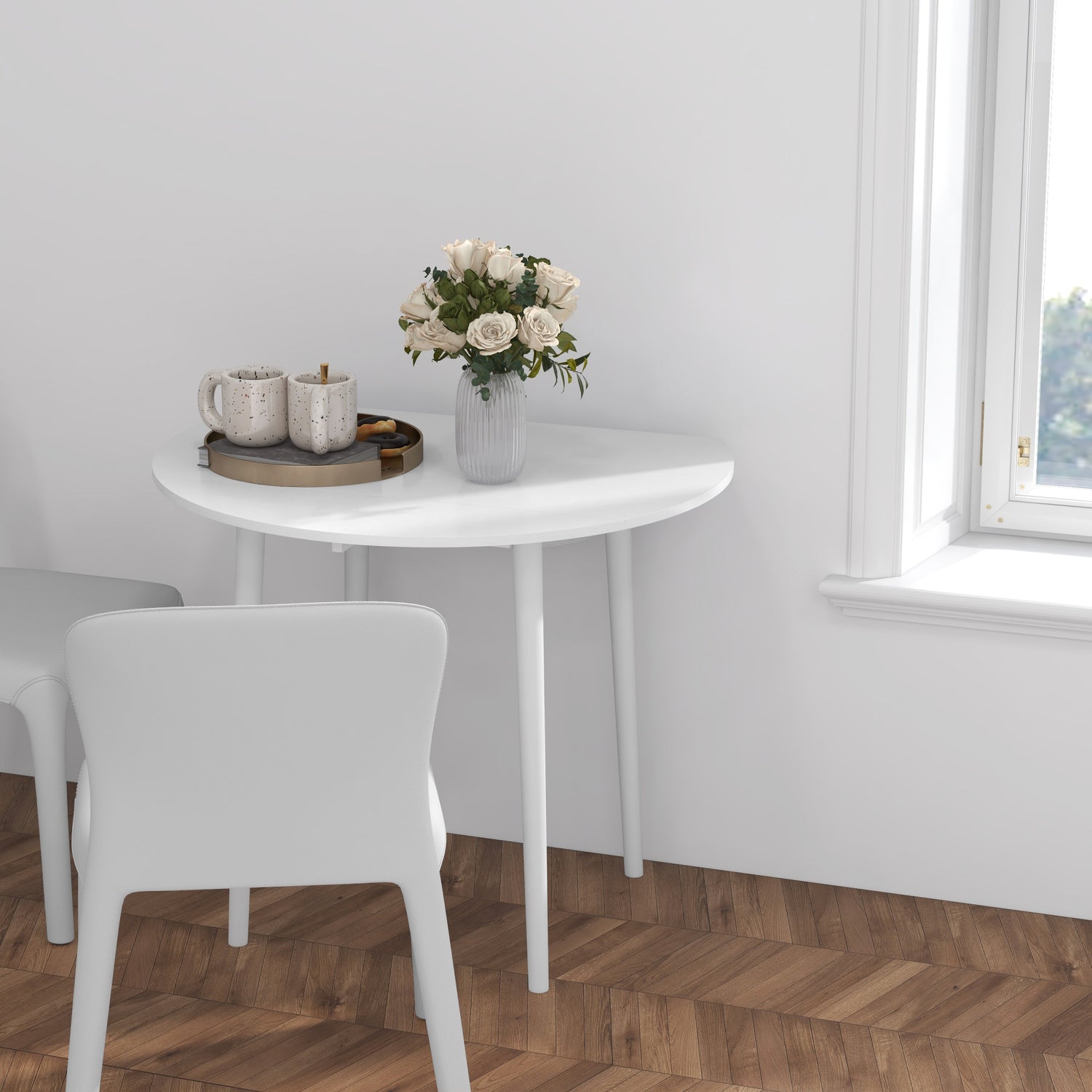 HOMCOM Round Drop Leaf Dining Table for 4 - White