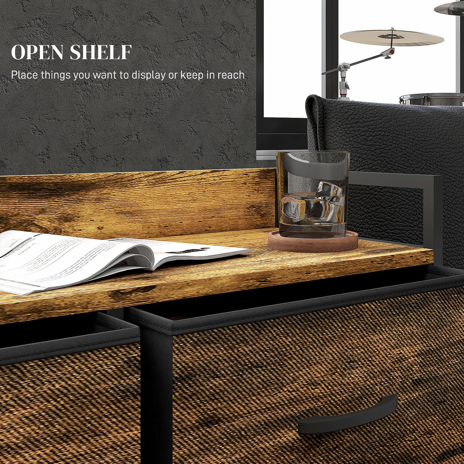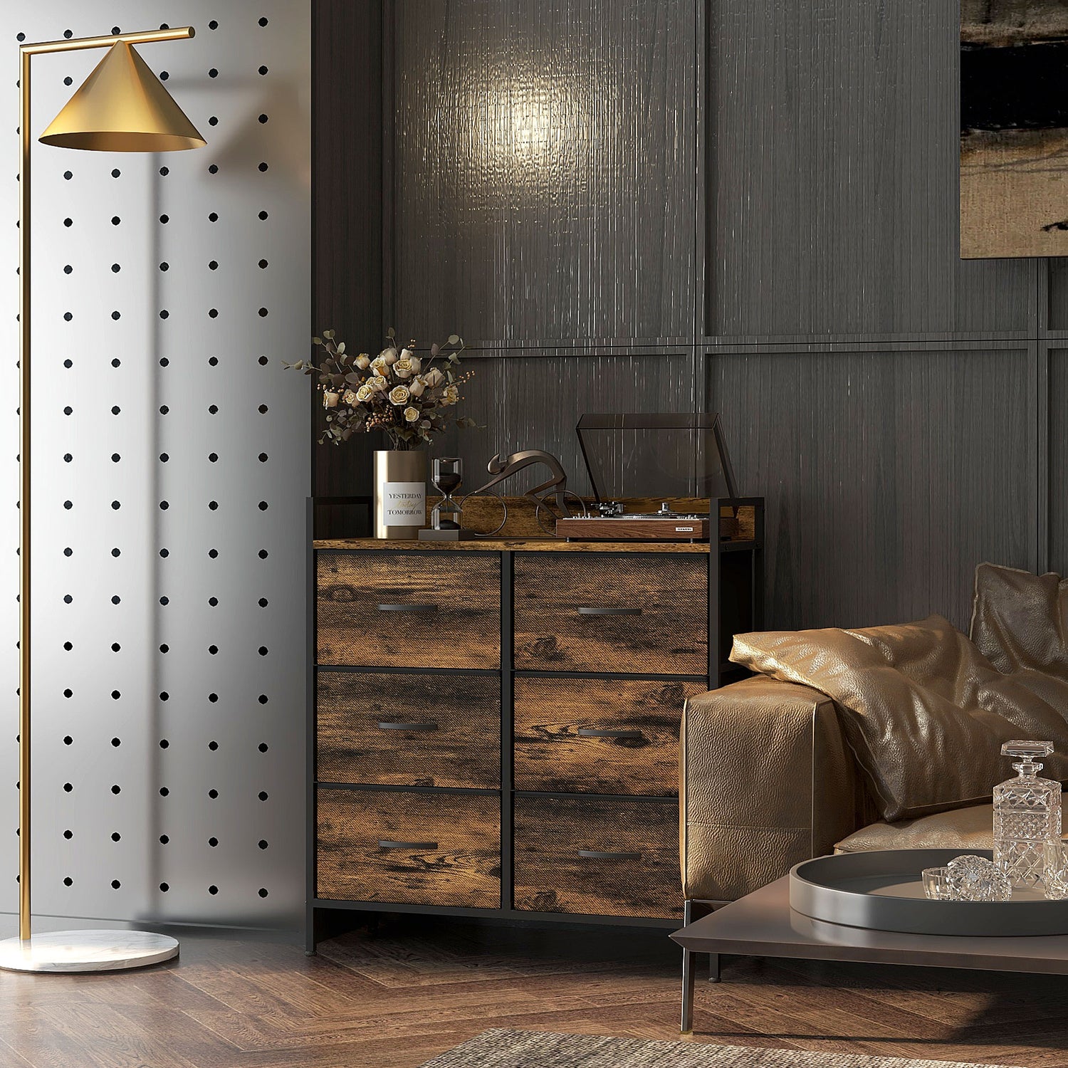 HOMCOM Rustic Chest of Six Fabric Drawers - Brown Wood Effect