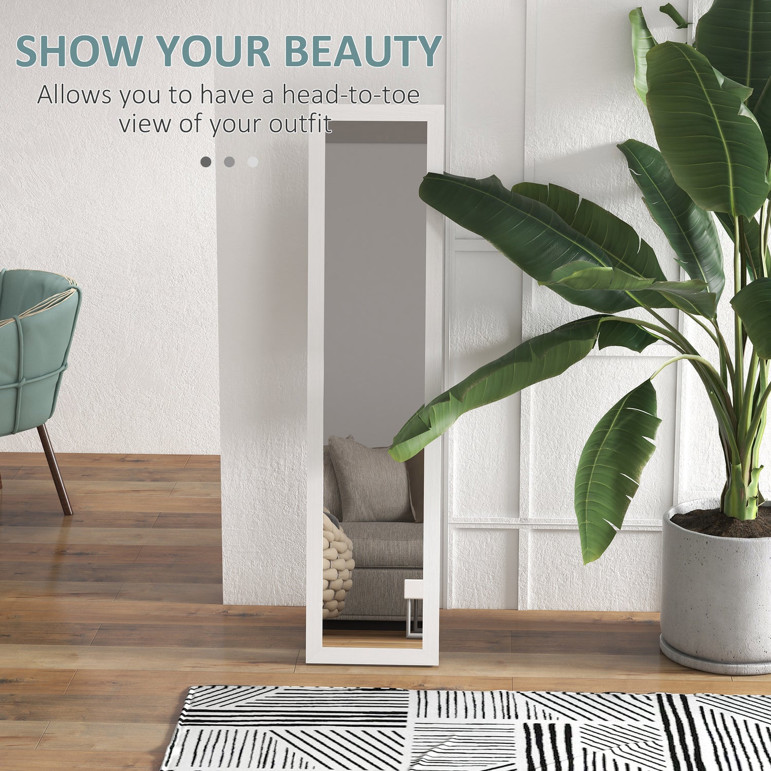 - On-wall and standing: Set this long mirror to a position and place great for you. Brackets included to fix to wall, this standing mirror also has a back leg so it stands steady.