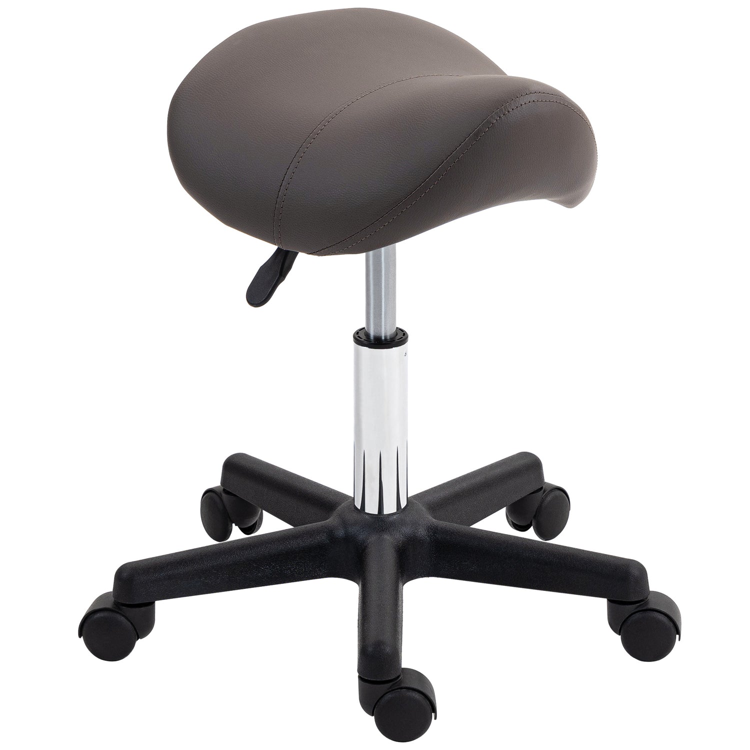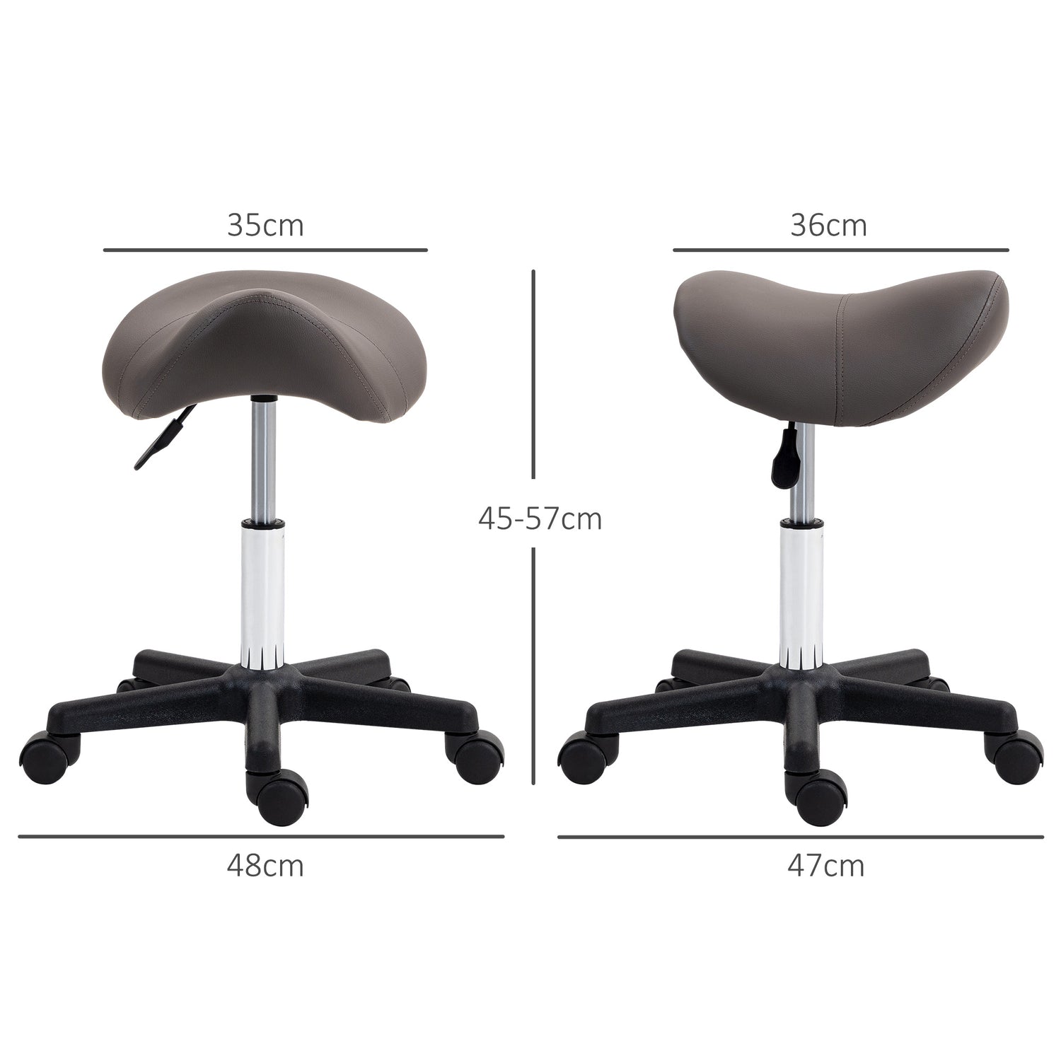 HOMCOM Saddle Stool, PU Leather Adjustable Rolling Salon Chair with Steel Frame for Massage, Spa, Beauty and Tattoo, Grey