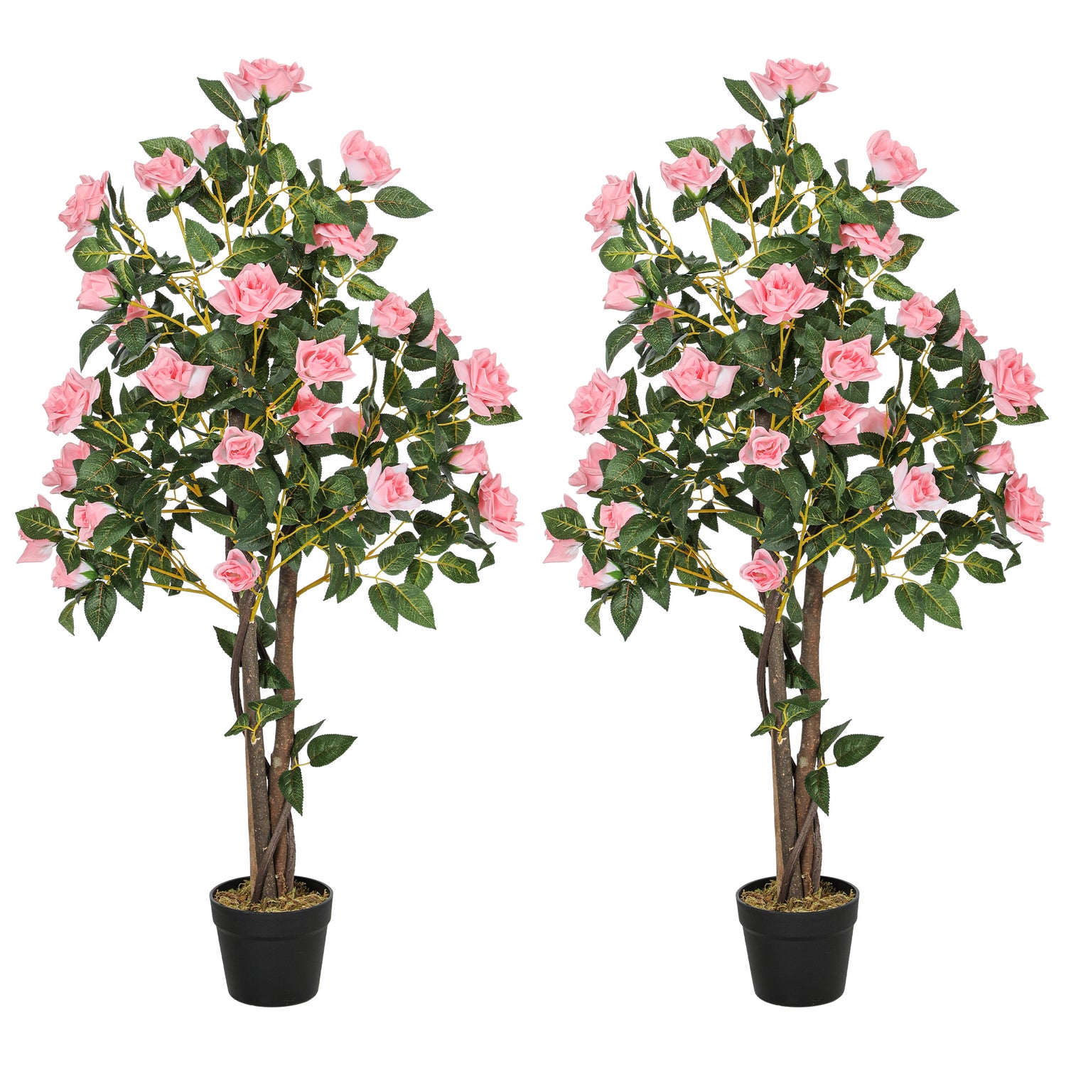 - Set of two artificial rose plants: Add instant colour to your home with this gorgeous artificial rose tree. Each plant has 20 rose flowers with inner metal to shape how you want, plus 145 leaves, a voluptuous piece.